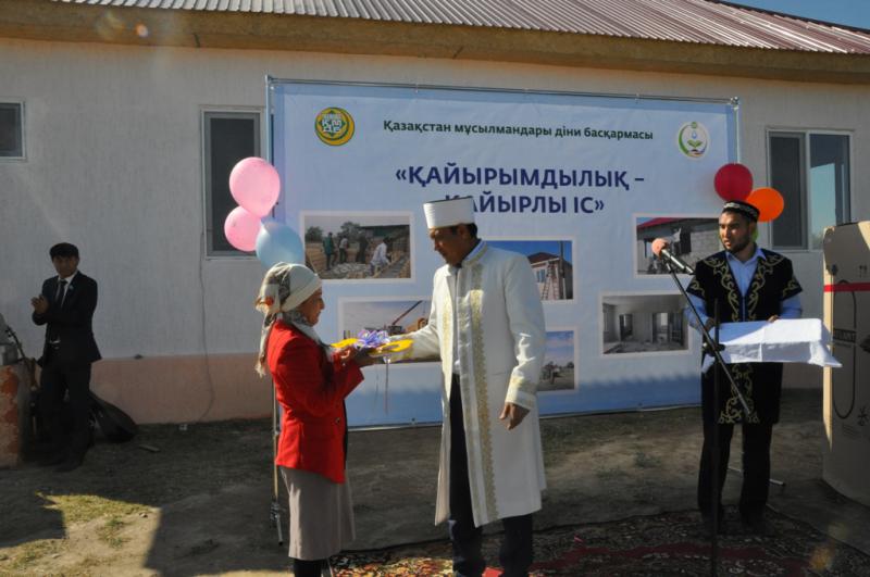 Бас мүфти Ержан қажы Малғажыұлының бастамасымен дін қызметкерлері пәтер жалдап тұратын 8 балалы отбасыға жұмыла көтеріп, үй салып берді.
