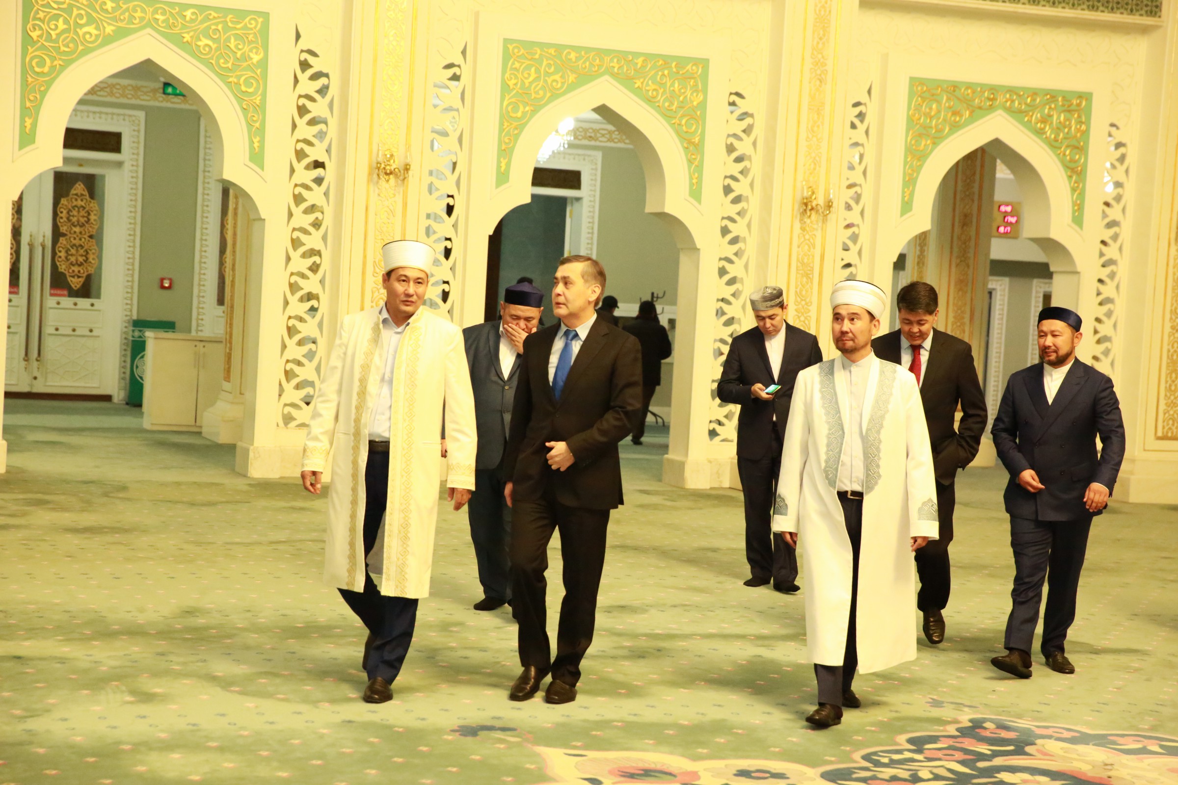 Алып мешітті аралап, жағдайды көзімен көріп, көңілге түйіп қайтуды жөн санаған Нұрлан Ермекбаевты ҚМДБ-ның төрағасы, Бас мүфти Ержан қажы Малғажыұлы мен қос наиб мүфти, «Әзірет Сұлтан» мешітінің Бас имамы Серікбай қажы Сатыбалдыұлы және «Нұр Астана» мешітінің Бас имамы Наурызбай Тағанұлы бастаған топ қарсы алып, түрлі мәліметтермен бөлісті.