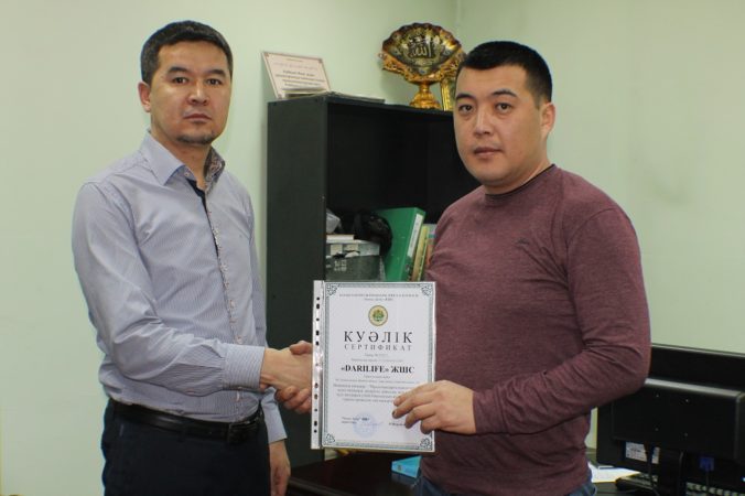 «DARILIFE» ЖШС компаниясының косметикалық гель өнімдері қайта тексерістен өткізіліп, сертификат мерзімі жаңартылды. Сертификатты ҚМДБ “Халал Даму” ЖШС-нің директор орынбасары Ануар Елжанов табыстады.