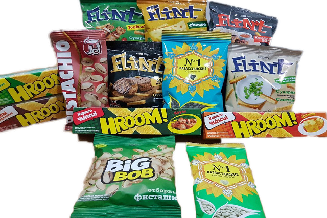 Аталмыш кәсіпорын 2009 жылдан бастап жеңіл тамақ нарығында өз өнімдерін өндіруде. Өнімдері Қазақстан аумағында кеңінен таралуда. Каз Снек Сауда кәсіпорыны өндіретін өнімдері келесідей: ТМ «Flint» қытырлағы, ТМ «Казахстанские №1» қуырылған дәні және күнбағыс жаңғақтары, ТМ «Big Bob» және «Jet» қуырылған тұзды пістесі, сонымен қатар ТМ «HROOM» картоп чипсиі.