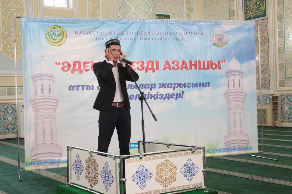 Науан хазірет орталық мешіті азан айтып жарысқан жандардың басын қосты. Бұл сайысқа Ақмола облысының барлық аудан-қалаларынан жиырмадан аса азаншы бақтарын сынады. Біләл сахабаның ізін жалғаған дарындар өздерінің әуезді үндерімен азанның қасиетті сөзін асқақтата орындап жатты. Мешіт құтты азанның әуенімен астасып бара жатқандай әсер қалдырады. Әділқазылар да әр азаншының мәнерлеп айту үрдісіне, қимыл-әрекетіне барынша назар аударды. Жүйріктер топ жарып, дара шықты. Соңғы сараптау қорытындысы бойынша бас жүлде Целиноградтық Асылтемір Қалкөзовке бұйырса, ал қалған екі орынды Сәми Курсбек (Астрахан ауданы) және Бауыржан Закиров (Ерейментау ауданы) иеленді. Жеңімпаздарға арнайы дипломдар мен ақшалай сыйлық табыс етілді.