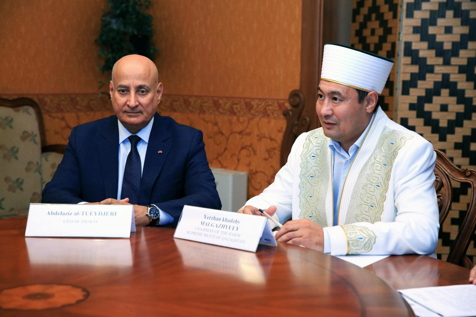 Қазақстан мұсылмандары діни басқармасының төрағасы Ержан қажы Малғажыұлы Астанада Білім, ғылым және мәдениет істері жөніндегі Ислам ұйымының (ИСЕСКО) Бас директоры Әбдел Әзиз Ат-Туэйджри бастаған делегацияны қабылдады.