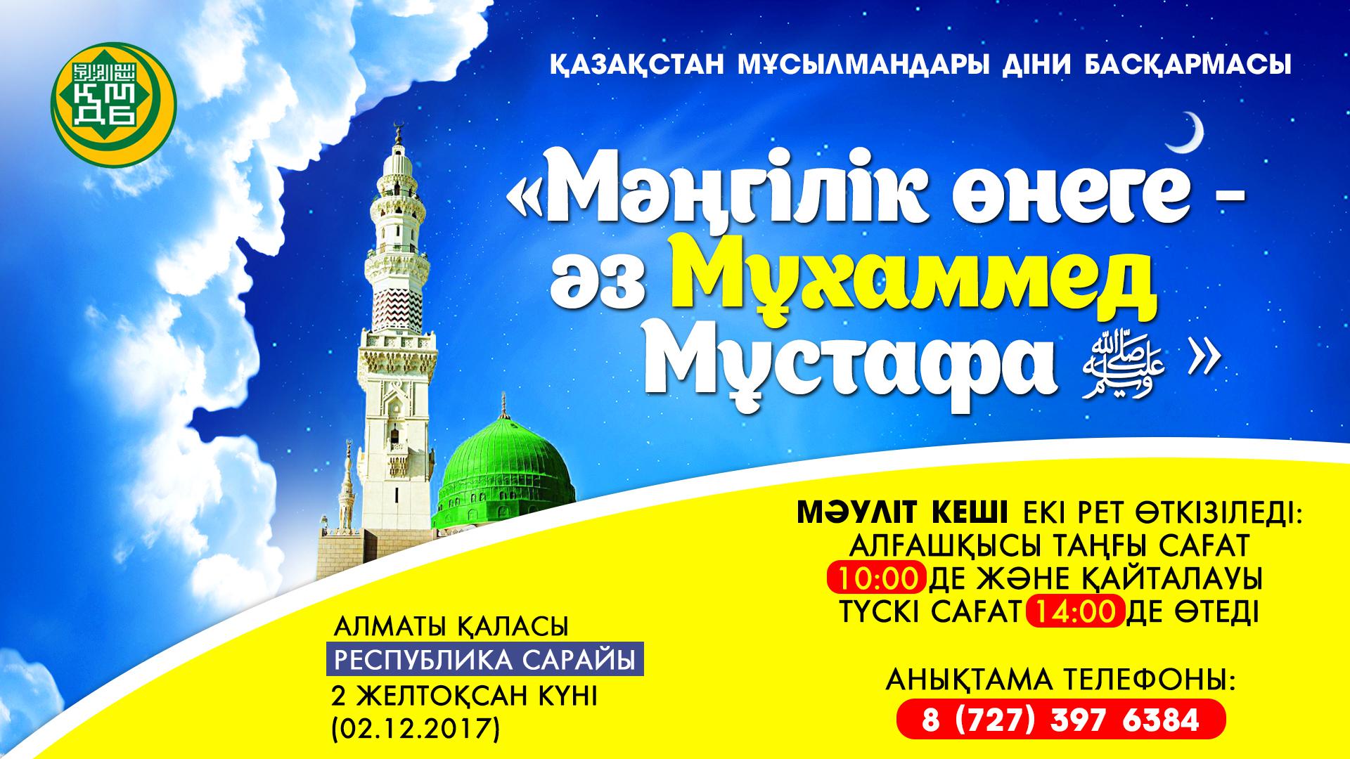 Желтоқсан айының 2 жұлдызы Алматы қаласы Республика сарайында Қазақстан мұсылмандары діни басқармасының ұйымдастыруымен дәстүрлі Мәуліт кеші өтеді.