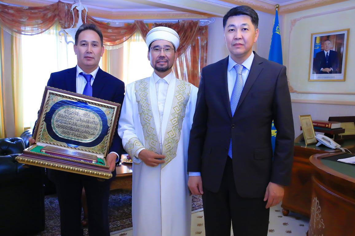 Астанада Қазақстан мұсылмандары діни басқармасының төрағасы Серікбай қажы Ораз ҚР Дін істері және азаматтық қоғам вице министрі Берік Арын бастаған лауазымды мемлекеттік қызметкерлерді қабылдады.