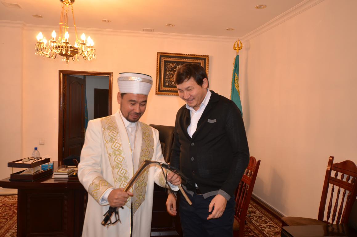 Кездесуде журналист Біләл Қуаныш Бас мүфтиді жаңа қызметімен құттықтап, сыйға қамшы тарту етті.