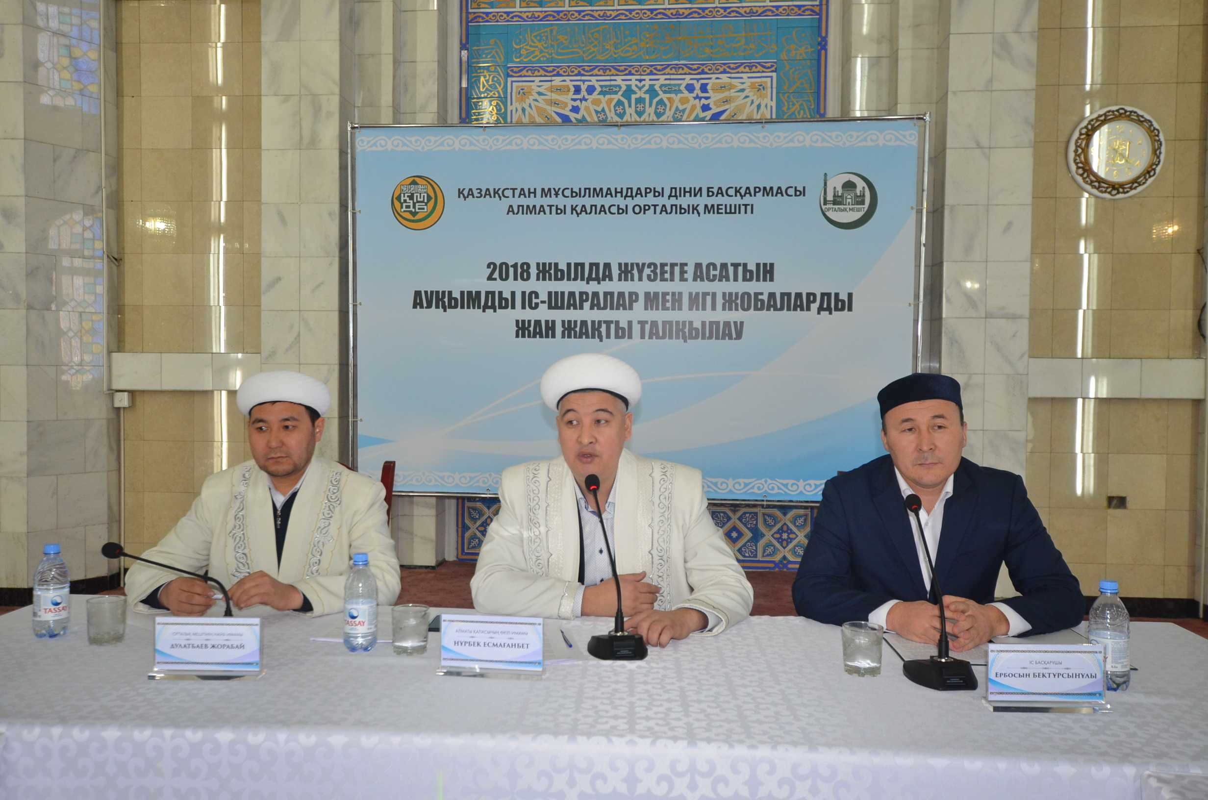 «Алла біздерді тура жолдан айырмасын. Баршамыздың міндетіміз асыл дініміз үшін аянбай қызмет атқару. 2017 жылды абыроймен өткізіп алдық. Ендігі мәселе келіп жеткен 2018 жылды жемісті етіп, қызметті одан әрі дамыту. Өздеріңізге мәлім жаңа тағайындалған Бас мүфти жұмысты жандандырып, нақты мақсаттар мен талаптар қойып отыр. Қызметке келген күнінен бастап баршамызға үлгі боларлық істерді де атқарып жатқаны өздеріңізге мәлім. Бас мүфти білікті һәм білімді дін қызметкерлерінің корпусын қалыптастыру, жастарға дұрыс діни ақпарат жеткізу, мемлекеттік «Рухани жаңғыру» бағдарламасын насихаттау, жамағат арасында патриотизмді уағыздау, еліміздегі және өңірдегі тұрақтылықты нығайтуға үлес қосу, деструктивті ағымдағы адамдарға түсіндірме жұмыстарын жүргізу, дәстүрлі ханафи мәзһабының қағидаларын және оның теріс пиғылды діни ағымдардан айырмашылығын баса айту секілді мәселелер төңірегінде нақты тапсырмалар беріп, қатаң талаптар қойды. Хазрет өз сөзінде: «Еліміздің руханият саласында атқарылып жатқан жұмыстар аз емес. Халқымыздың рухани өмірінде дін қызметкерлері үлкен маңызға ие. Діни басқармаға үлкен жауапкершілік артылған бүгінгі сындарлы кезеңде белсенді жұмыс жасауымыз керек. Берілген міндеттемелерді жоғары деңгейде жүзеге асыруларыңызды талап етемін»,-деген болатын. Өздеріңізге мәлім жақында ғана Мүфти хазрет «Асыл арна» телеарнасына сұхбат берді. Айтып өткен мәселелерінің бірегейі мутауәллиәт қызметі. Мутауәлли-діни қызметтің ешқандай кедергісіз, еш нәрсеге мұқтаж болмастан жұмыс жасауын қамтамасыз етуші лауазым. Бас мүфти осы қызметті ендірудің кезі келгендігі жайлы айтып өтті. Бұл қызмет мешіттің есеп-қисап, шаруашылық сынды жақтарын толық орындауды қажет етеді. Сонда имам бұл мәселелерге бас қатырмай діни ағартушылық, уағыз-насихат, діни рәсімдер сынды істермен шұғылданатын болады. Яғни, имамдар сәлдесі мен шапаны секілді мұнтаздай таза, ақ болып, тек негізгі міндетін атқарып жүреді. Бұл имамның рухани жетекші, ағартушы болып қалуына үлкен септігін тигізеді. Әйтпесе халықтың арасында имамдар жайлы алып қашпа сөздердің жүретіні өздеріңізге мәлім. Ал осы бір бастама бұның алдын алудың бірден бір жолы. Міне, хазреттің осы сынды бастамаларын қолдап отыру да біздің тарапымыздан жүзеге асырылатын істердің бірі болмақ. Бұл лауазым жаңадан шыққан дүние емес. Мутауәллиәт Орта Азияда қалыптасқан тарихи лауазымдардың бірі»,-дей келе қала имамдарына ҚМДБ тарапынан келіп түскен тапсырмаларды уақытылы орындап, тиянақтылық танытуды тапсырды.