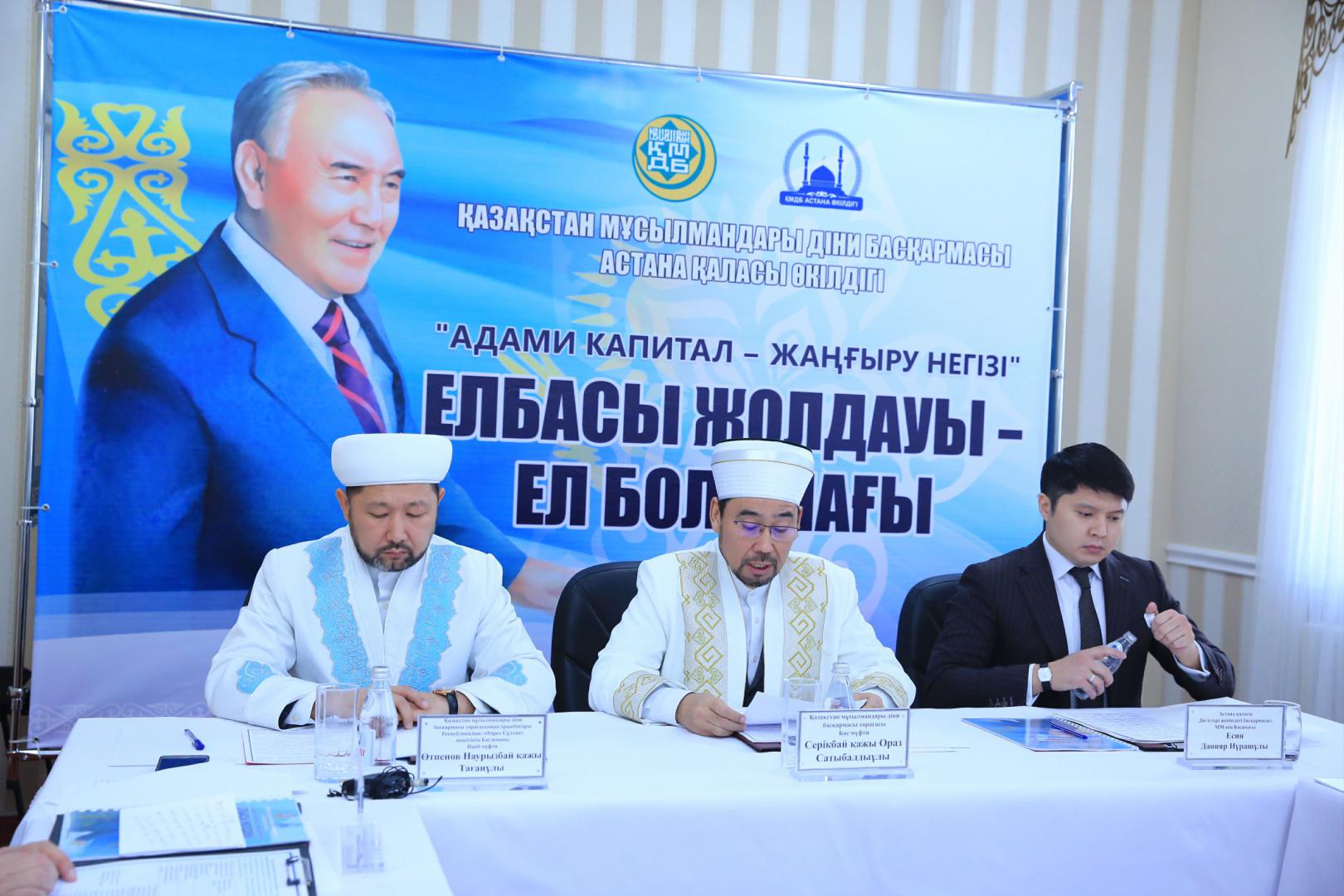 Бүгін «Нұр Астана» орталық мешітінде Қазақстан мұсылмандары діни басқармасының төрағасы, Бас мүфти Серікбай қажы Ораздың қатысуымен «Адами капитал – жаңғыру негізі» атты Елбасы Жолдауын қала имамдарына кеңінен таныстыру жиыны өтті.