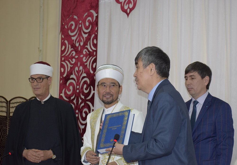 Бас мүфти Серікбай қажы Ораздың білім ордасына арнайы келіп, шәкірттермен жүздесіп, салиқалы сұхбат жасағанына ризашылығын білдірген университет басшылығы Бас мүфтиге естелік ретінде ұжымның шығарған «Арабша-қазақша» сөздігін сыйға тартты.
