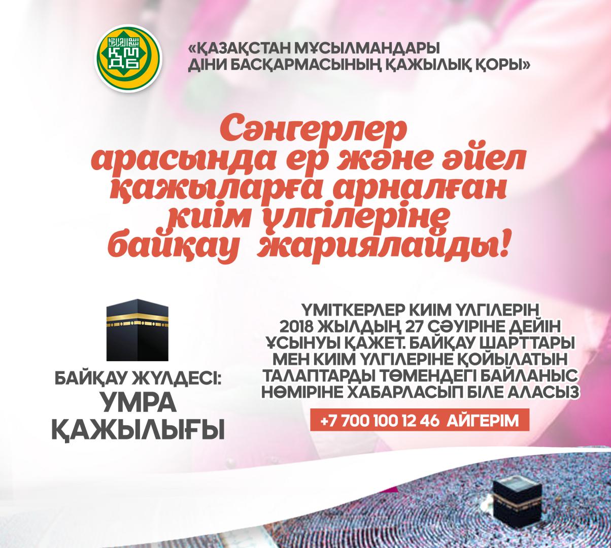 СӘНГЕРЛЕР АРАСЫНДА ЕР ЖӘНЕ ӘЙЕЛ ҚАЖЫЛАРҒА АРНАЛҒАН КИІМ ҮЛГІЛЕРІНЕ БАЙҚАУ ЖАРИЯЛАЙДЫ.