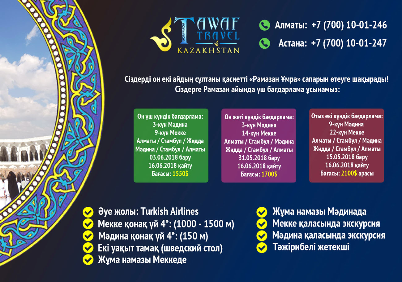 "Tawaf travel" туроператоры сіздерді он екі айдың сұлтаны