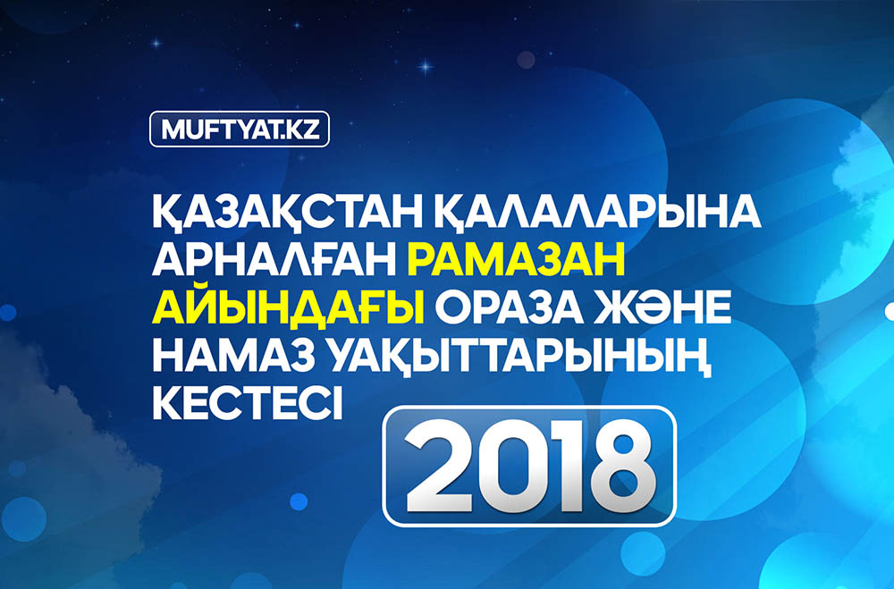 Рамазан уақытының өзгеруіне байланысты назарларыңызға 2018 жылғы Қазақстан елдімекендерінің Рамазан айындағы ораза және намаз кестесінің жаңа нұсқасын ұсынамыз!