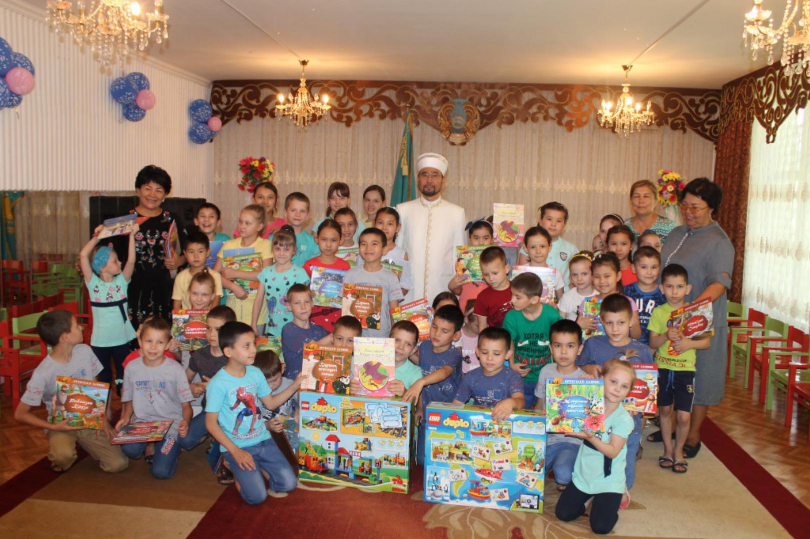 Жылы жүзді кездесу шарасында Бас мүфти балаларға сыйлық үлестіріп, бүлдіршіндердің болашағы үшін дұға жасады.