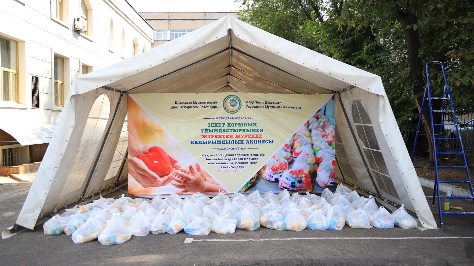 Қасиетті Құрбан айтта Қазақстан мұсылмандары діни басқармасына қарасты «Зекет» қоры 150 отбасыға азық-түлік пакетін таратты.