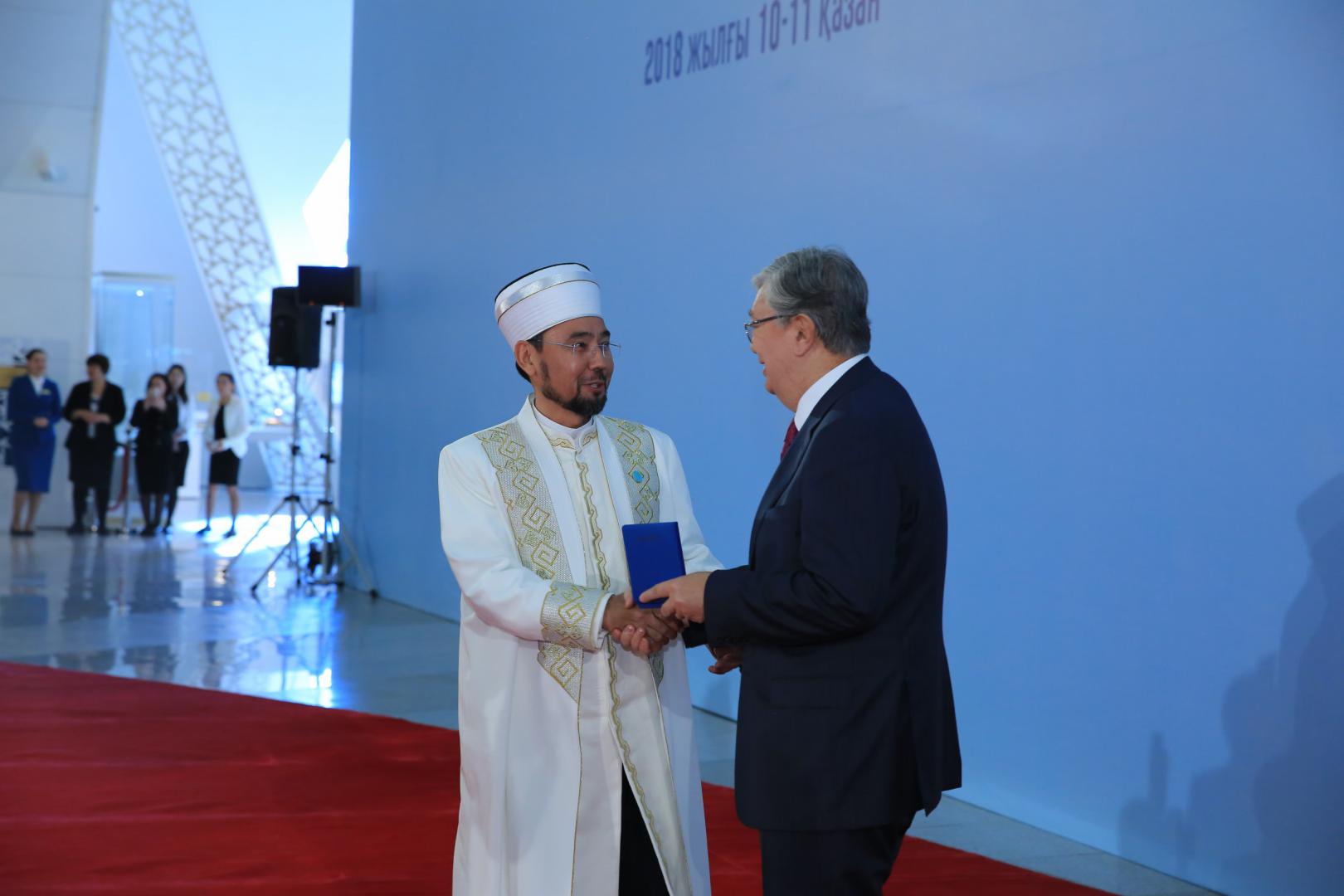 Марапатты Парламент Сенатының төрағасы, Әлемдік және дәстүрлі діндер лидерлері Съезі Хатшылығының жетекшісі Қасым-Жомарт Тоқаев табыс етті.