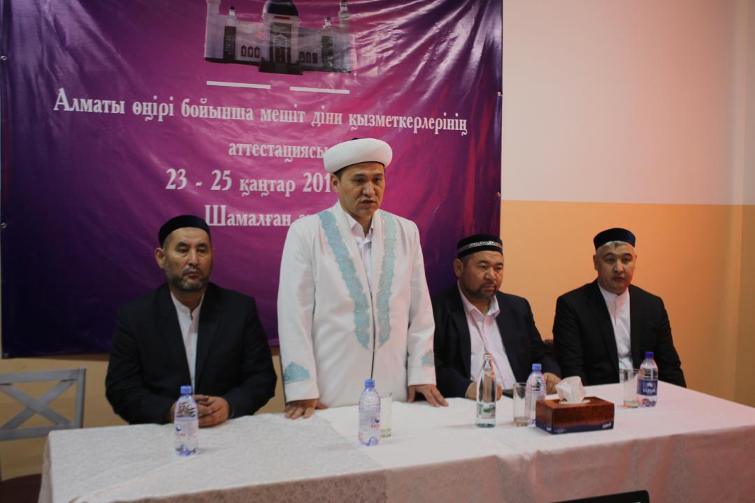 Комиссия төрағасы ҚМДБ-ның наиб мүфтиі Алау қажы Шайқымұлы аттестацияның маңыздылығын түсіндіріп, сараптама өтуші діни мамандарға сәттілік тіледі.