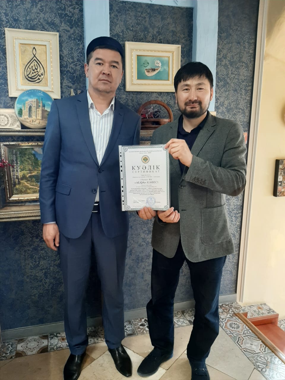 Эксперт-технолог мамандар «ALQA» асханасында өткізілген бақылау жұмыстарына сәйкес акт толтырып, күмәнді деп танылған өнімдер лабораториялық зертханаға жіберілді. Рұқсат етілмейтін азық-түлік өнімдері, тағамдық қоспалар, дәмдеуіштер «ҚМДБ халал» стандартына сәйкес келетін өнімдерге алмастырылды. Лабораториялық зерттеу және тексеріс қорытындысының оң нәтежие көрсеткендіктен, «Халал Даму» ЖШС директоры А.Елжанов кафенің барлық қызметкерлеріне «Халал және харам», «Е тағамдық қоспалар», «ҚМДБ халал стандартына сәйкес қызмет көрсету» тақырыбында оқу-семинарын өткізіп, сертификат табыстады.