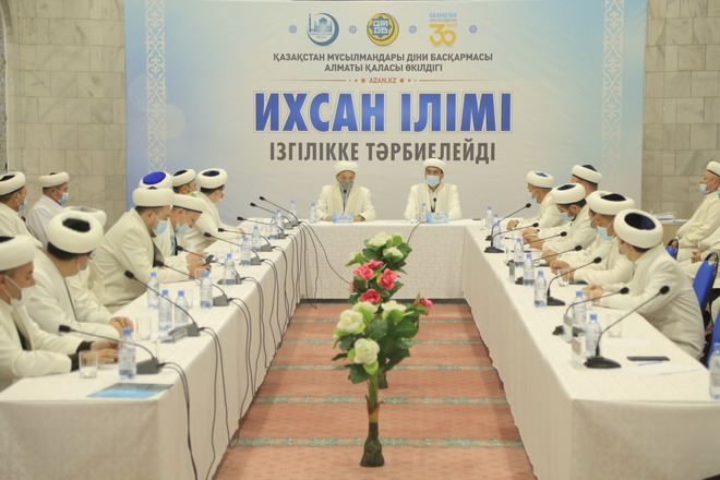 Алматы Орталық мешітінде ҚМДБ Төрағасының орынбасары, наиб мүфти Кенжеәлі Қоңыратбайұлының жетекшілігімен «Ихсан ілімі ізгілікке тәрбиелейді» тақырыбында қала имамдарының жиыны өтті.