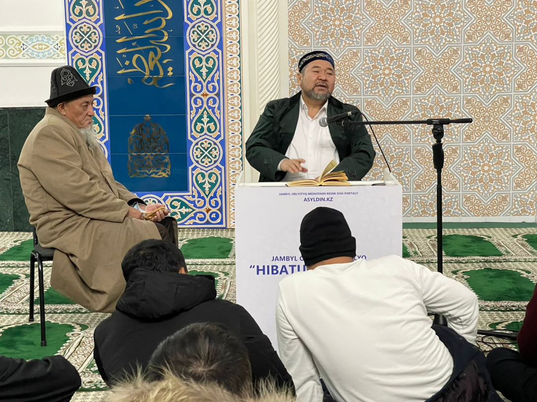 Наиб мүфти, ҚМДБ Шариғат және пәтуә бөлімінің меңгерушісі, Ғұламалар кеңесінің мүшесі Сансызбай Құрбанұлы Жамбыл облыстық «Һибатулла Тарази» мешітінде жамағатпен жүздесті.