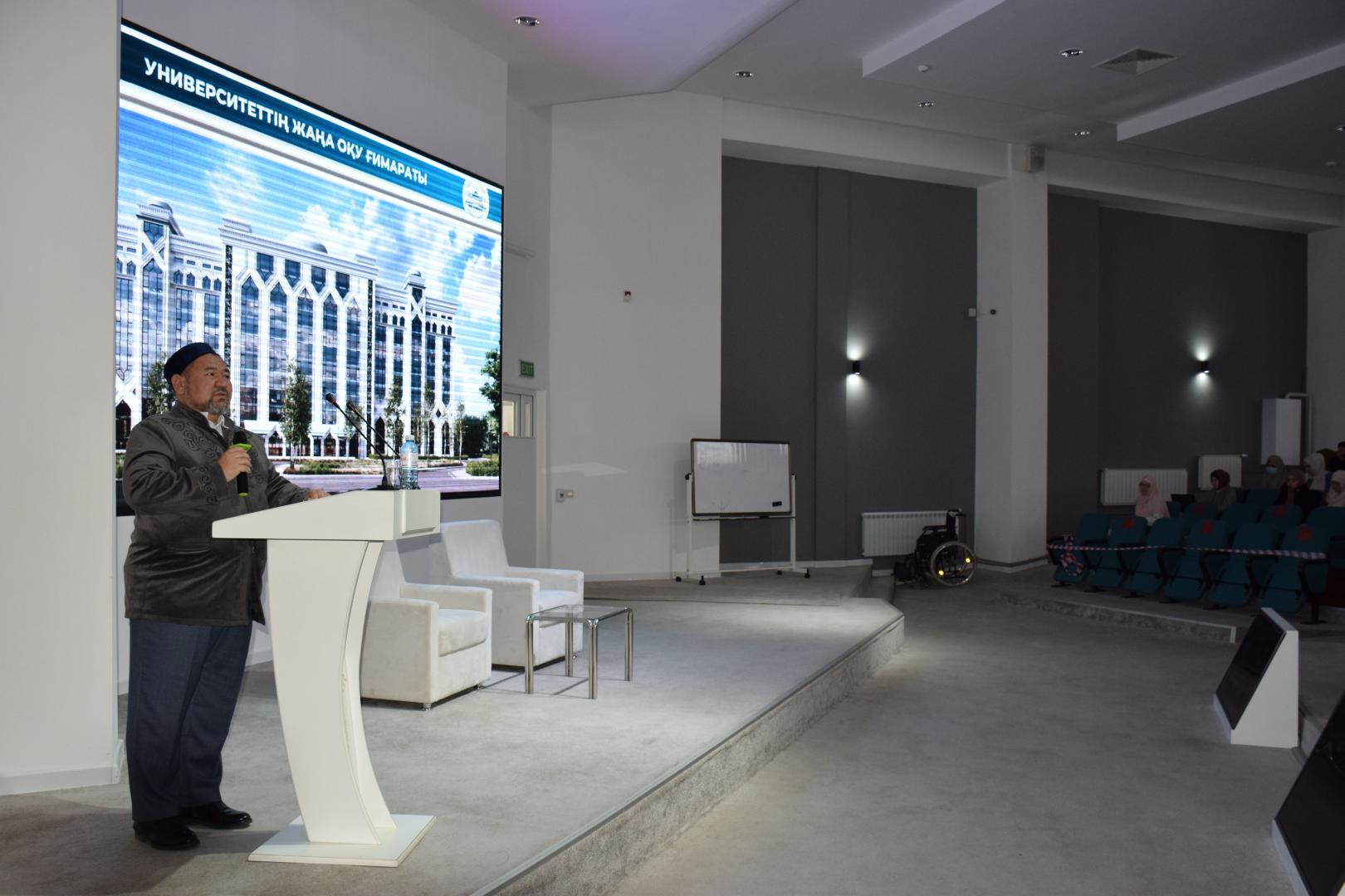 ҚМДБ Төрағасының орынбасары, наиб мүфти Сансызбай Құрбанұлы Нұр-Мүбарак университетінің студенттеріне арнайы дәріс оқыды.
