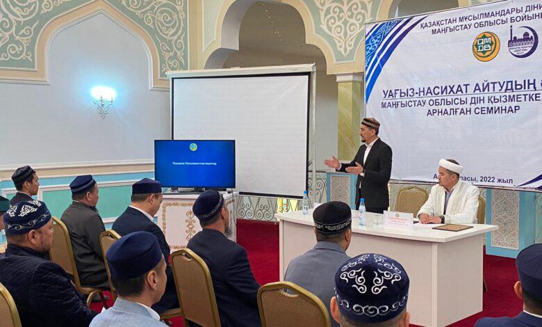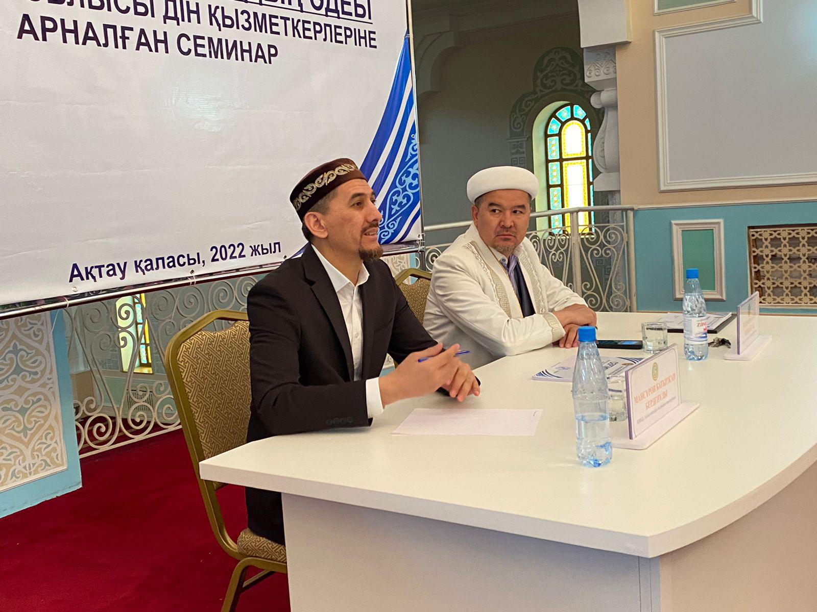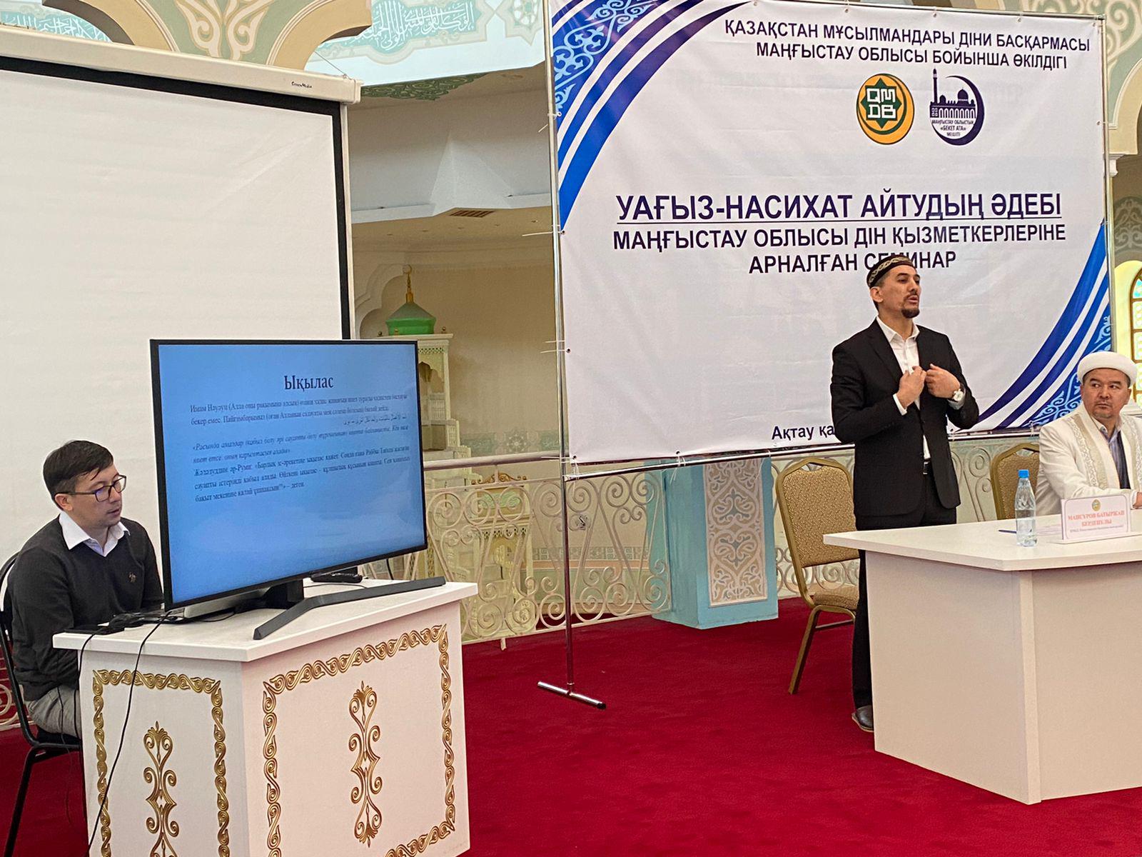 Алдымен бөлім меңгерушісі Маңғыстау облыстық орталық «Бекет ата» мешіті мен «Отпан» ақпараттық-түсіндіру және оңалту орталығының ұйымдастыруымен өңір имамдарына «Уағыз-насихат айтудың әдебі» тақырыбында семинар өткізді.