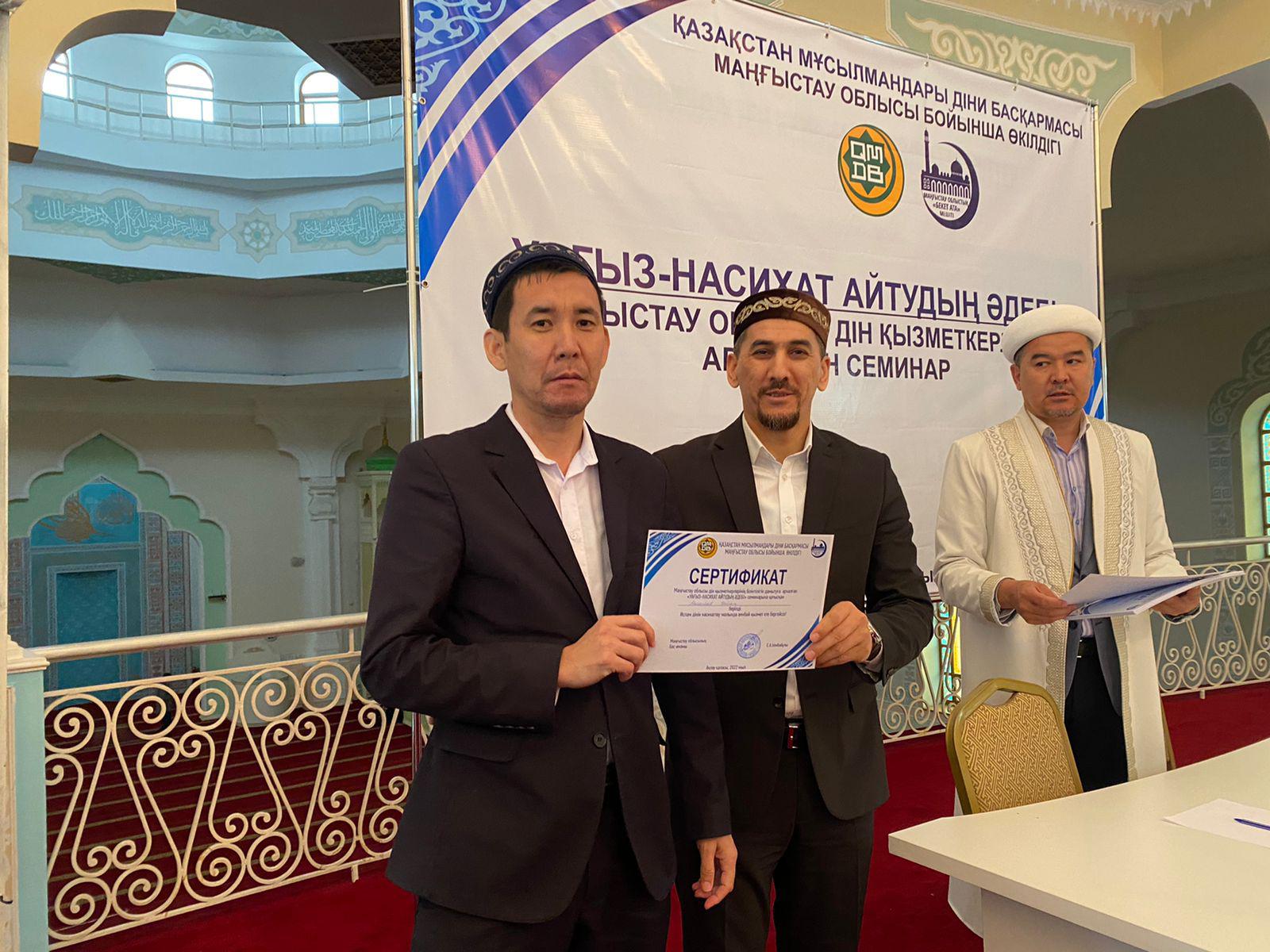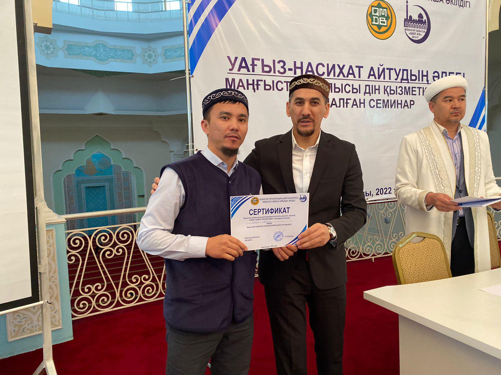 Семинар соңында имамдар мен ұстаздарға сертификаттар табыс етілді.