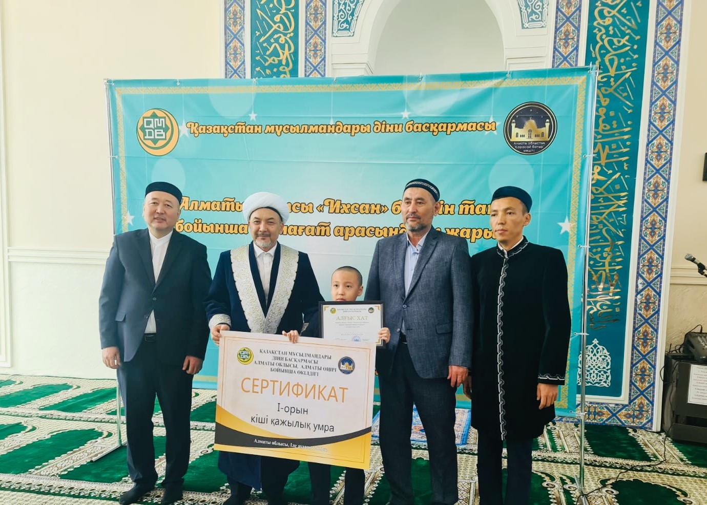 ҚМДБ Төрағасының орынбасары байқау жеңіпаздарын марапаттап, білім жарысында жүлделі 1-орынды жеңіп алған Сұлтанәли Сейтқалиға Ұмра қажылығына жолдама берді. Байқауда 2-орын алған Жандос Ерланұлы – 100 000 теңге, 3-орынға ие болған Қадыр Роллан 70 000 теңге көлемінде қаржылай сый-сияпатқа ие болды.