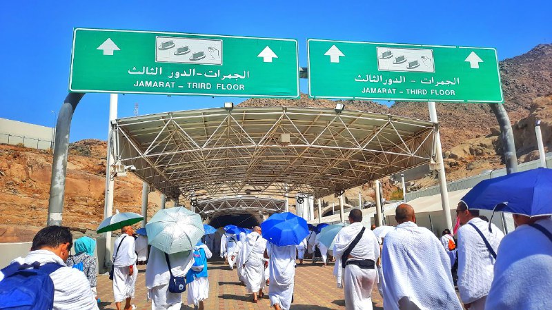 Тас ату рәсімі Жамарат деп аталатын көпқабатты орында атқарылады. Мұнда Исмаилдың шайтанға үш рет тас атқан жеріне үш бағана қойылған. Бүгін қажылар Мұздалифадан теріп алған 49 тастың жетеуін ақаба жәмраға атты. Енді алдағы екі-үш күнде қажылар Жамаратқа барып тағы да бірнеше тас лақтырады.