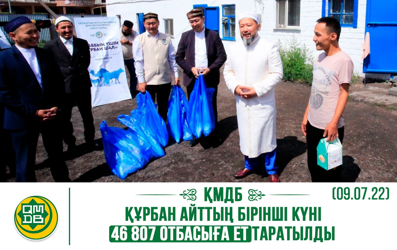 Қазақстан мұсылмандары діни басқармасының қоғам алдындағы негізгі қызметінің бірі – қайырымдылық шараларын ұйымдастыру. ҚМДБ көмекке мұқтаж жандарды қолдау мақсатында биыл да құрбан шалуды офлайн және WWW.QURBAN2022.KZ сайты арқылы онлайн жүзеге асырып отыр.