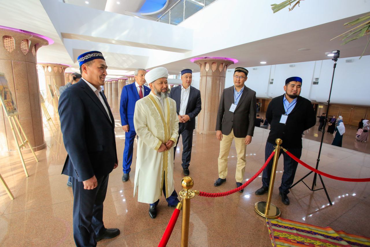Алматы қаласының бас имамы Төлеби Оспан Бас мүфтиге көрме залына қойылған жәдігерлермен таныстарды.
