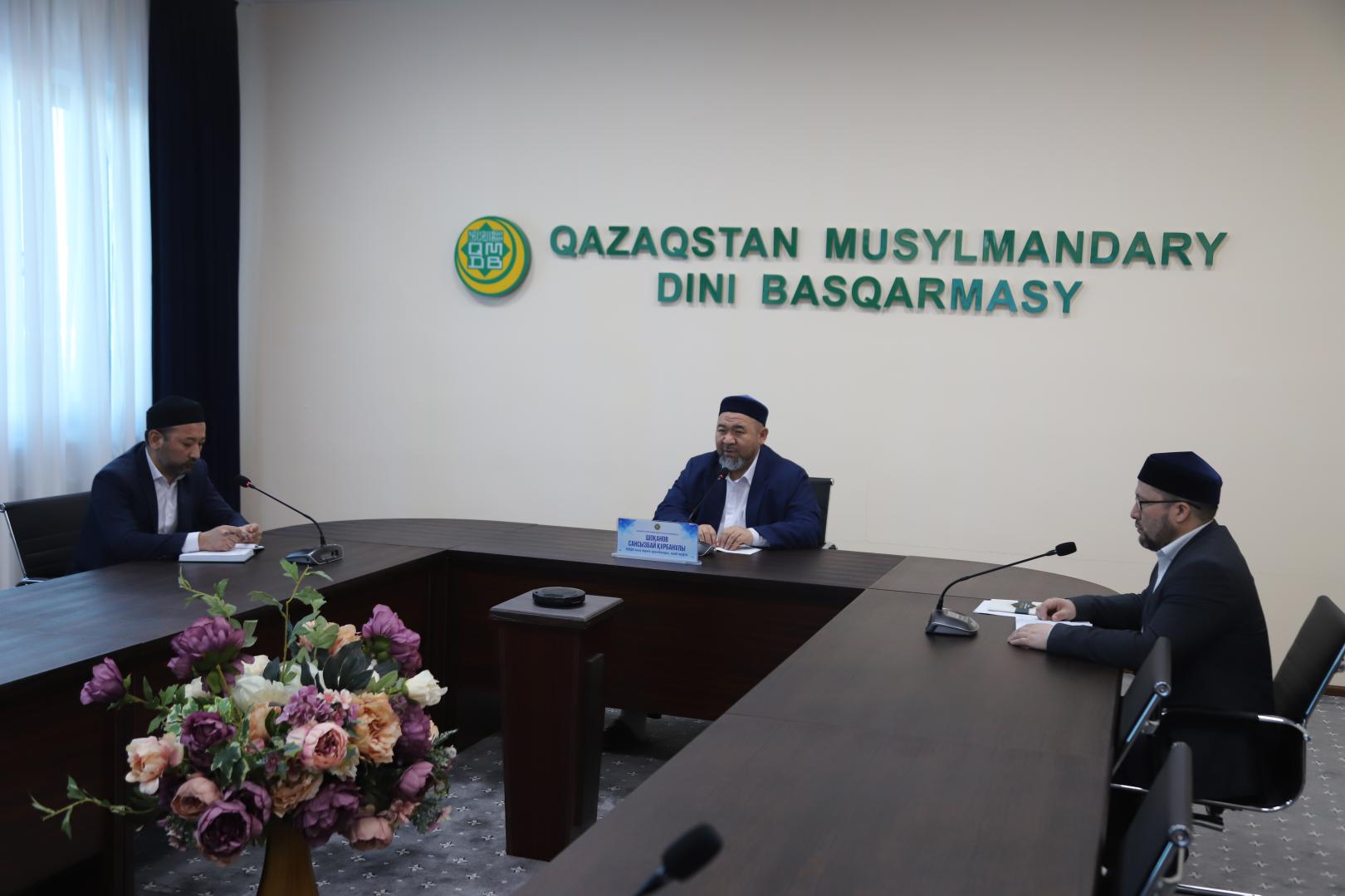 Наиб мүфти, ҚМДБ Шариғат және пәтуа бөлімінің меңгерушісі Сансызбай Құрбанұлының төрағалығымен еліміздегі пәтуаға жауапты мамандардың онлайн жиналысы өтті.