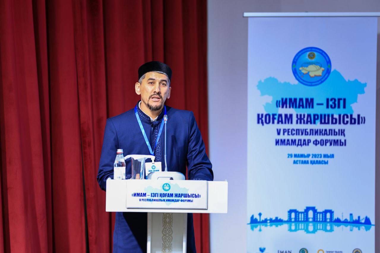 Бүгін Астана қаласында Қазақстан мұсылмандары діни басқармасының ұйымдастыруымен «Имам – ізгі қоғам жаршысы» тақырыбында өткен V республикалық имамдар форумының үндеуі қабылданды. Үндеуді ҚМДБ Уағыз-насихат бөлімінің меңгерушісі Батыржан Мансұров оқып берді.