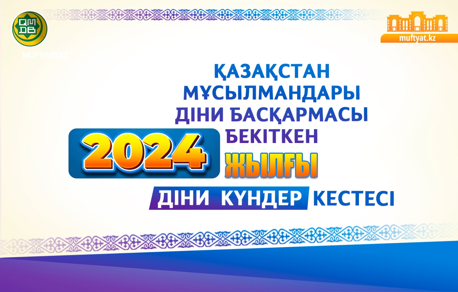 Қазақстан мұсылмандары діни басқармасының Шариғат және пәтуа бөлімі 2024 жылғы діни күндер кестесін бекітті.