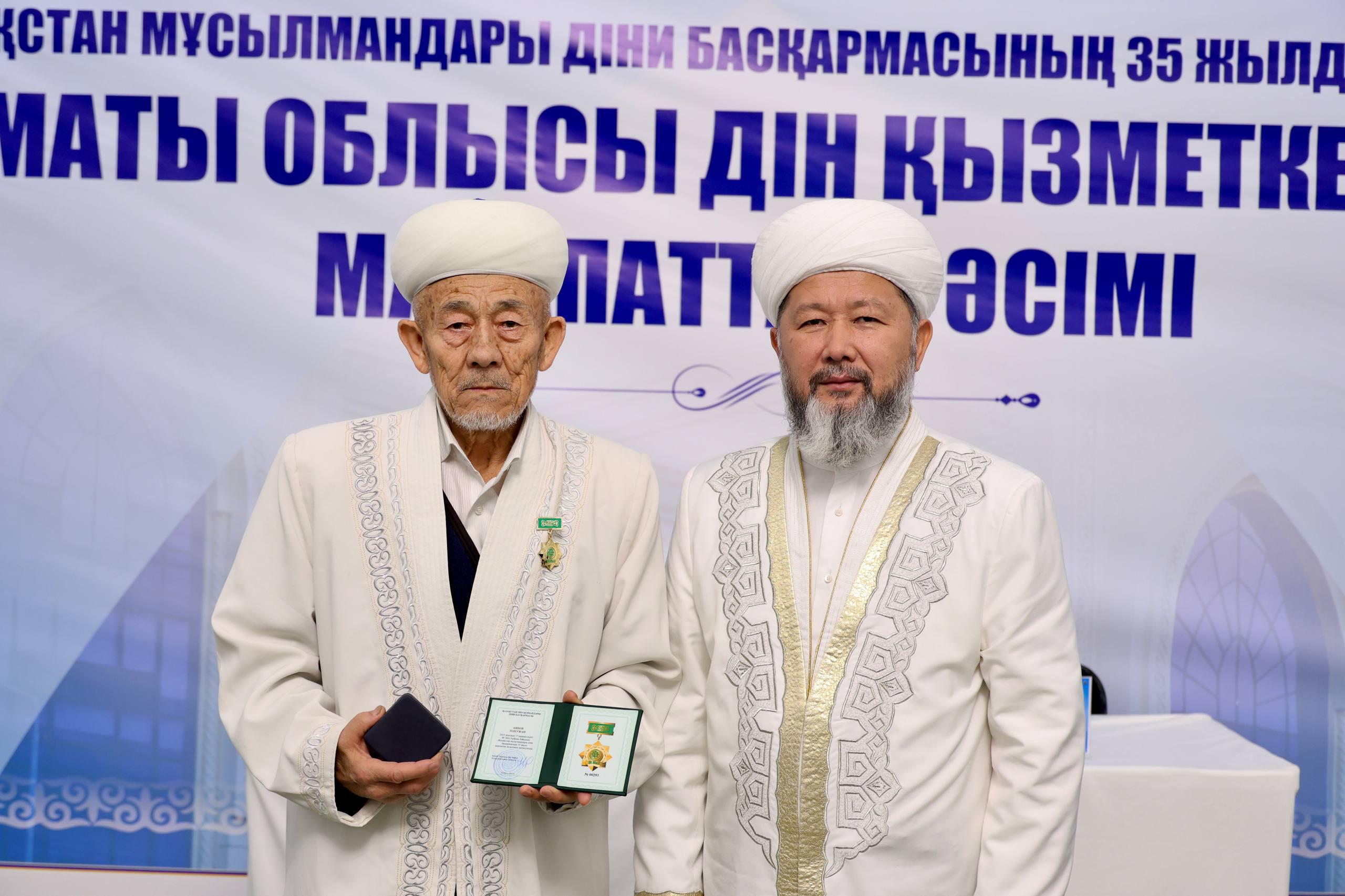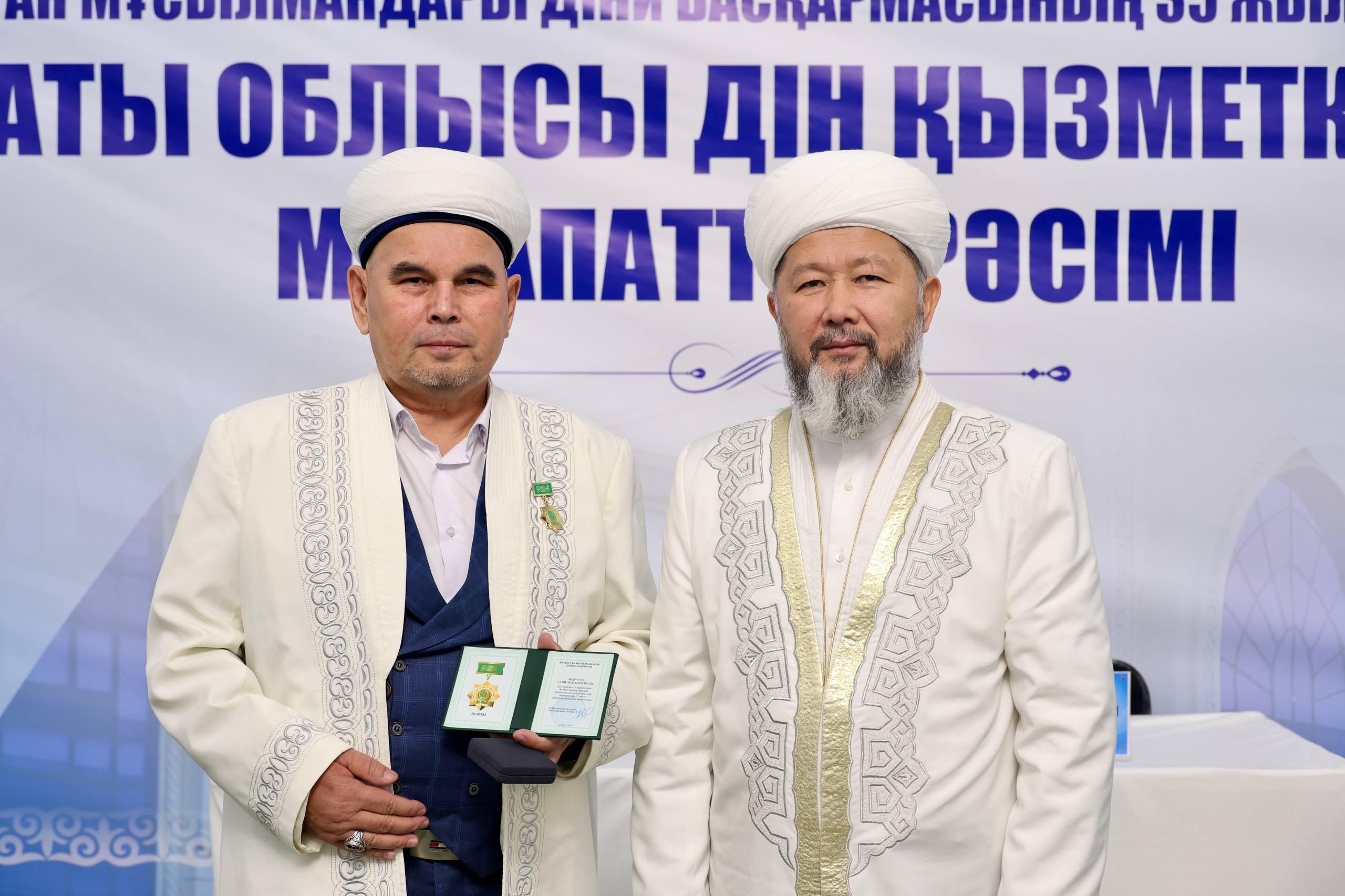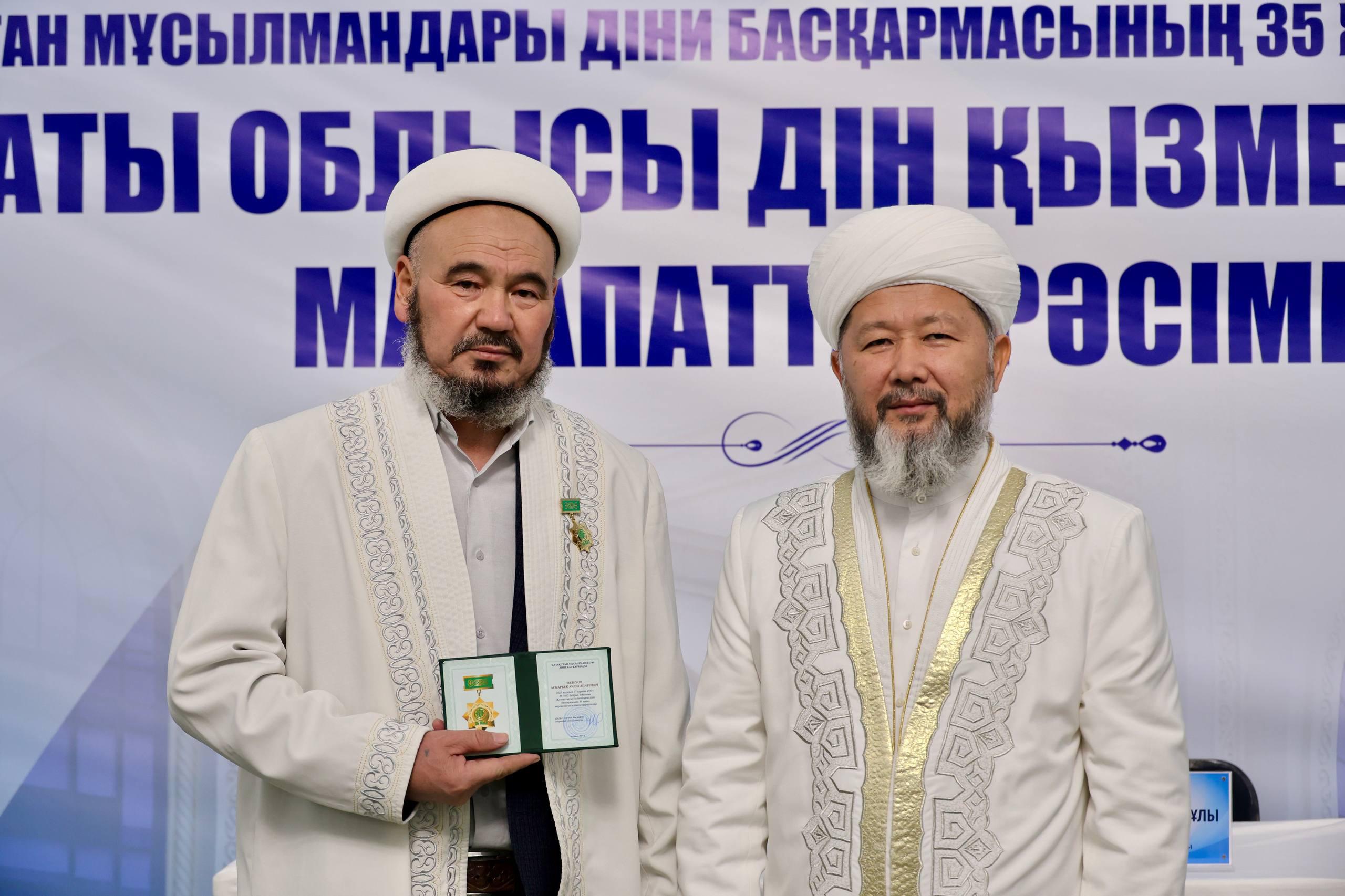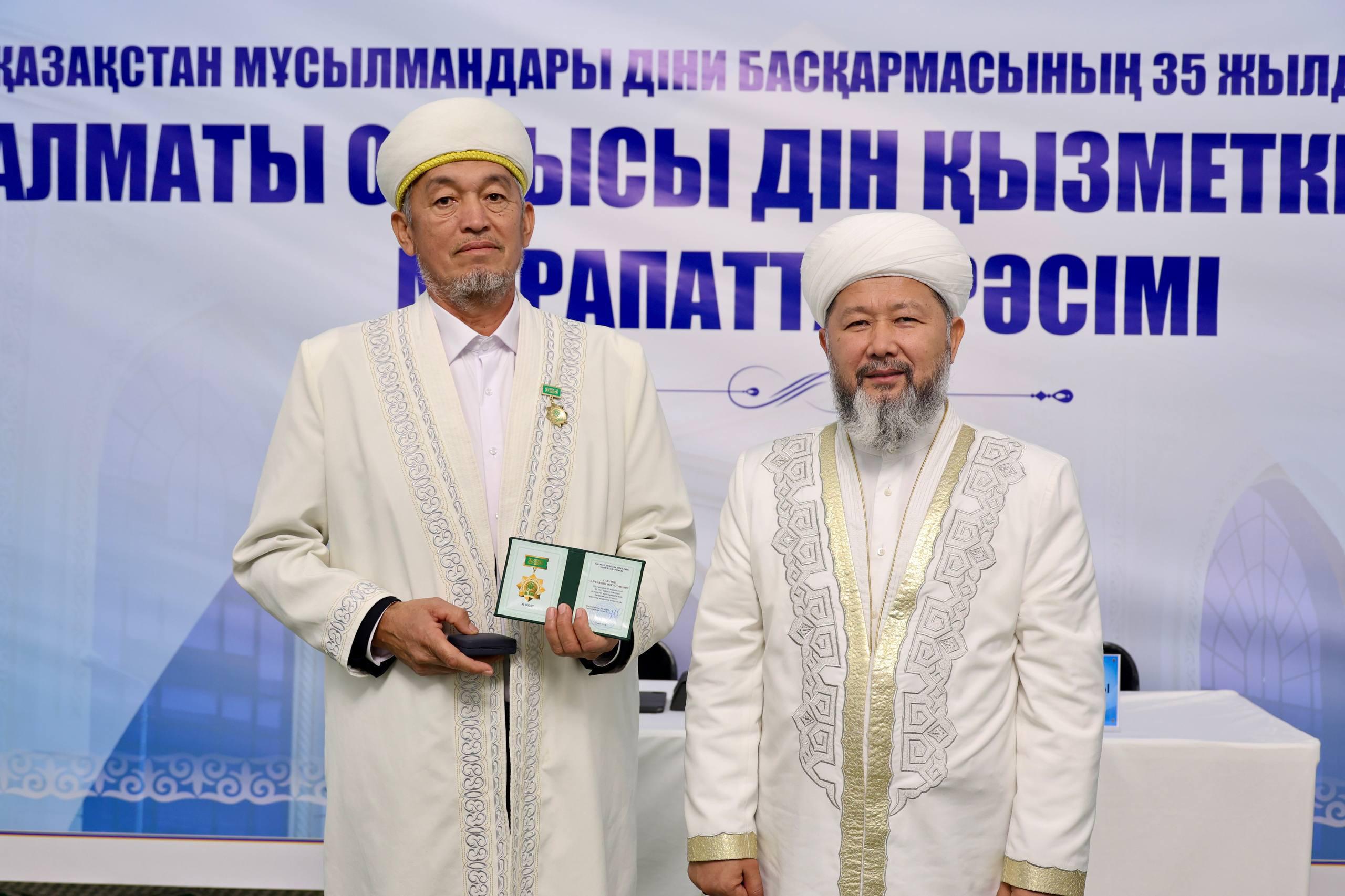 Алматы облысына жасаған жұмыс сапары барысында Қазақстан мұсылмандары діни басқармасының төрағасы, Бас мүфти Наурызбай қажы Тағанұлы өңірдің рухани өміріне елеулі үлес қосып жүрген бірқатар дін қызметкерлерін ҚМДБ-ның 35 жылдық мерейтойлық медалімен марапаттады.