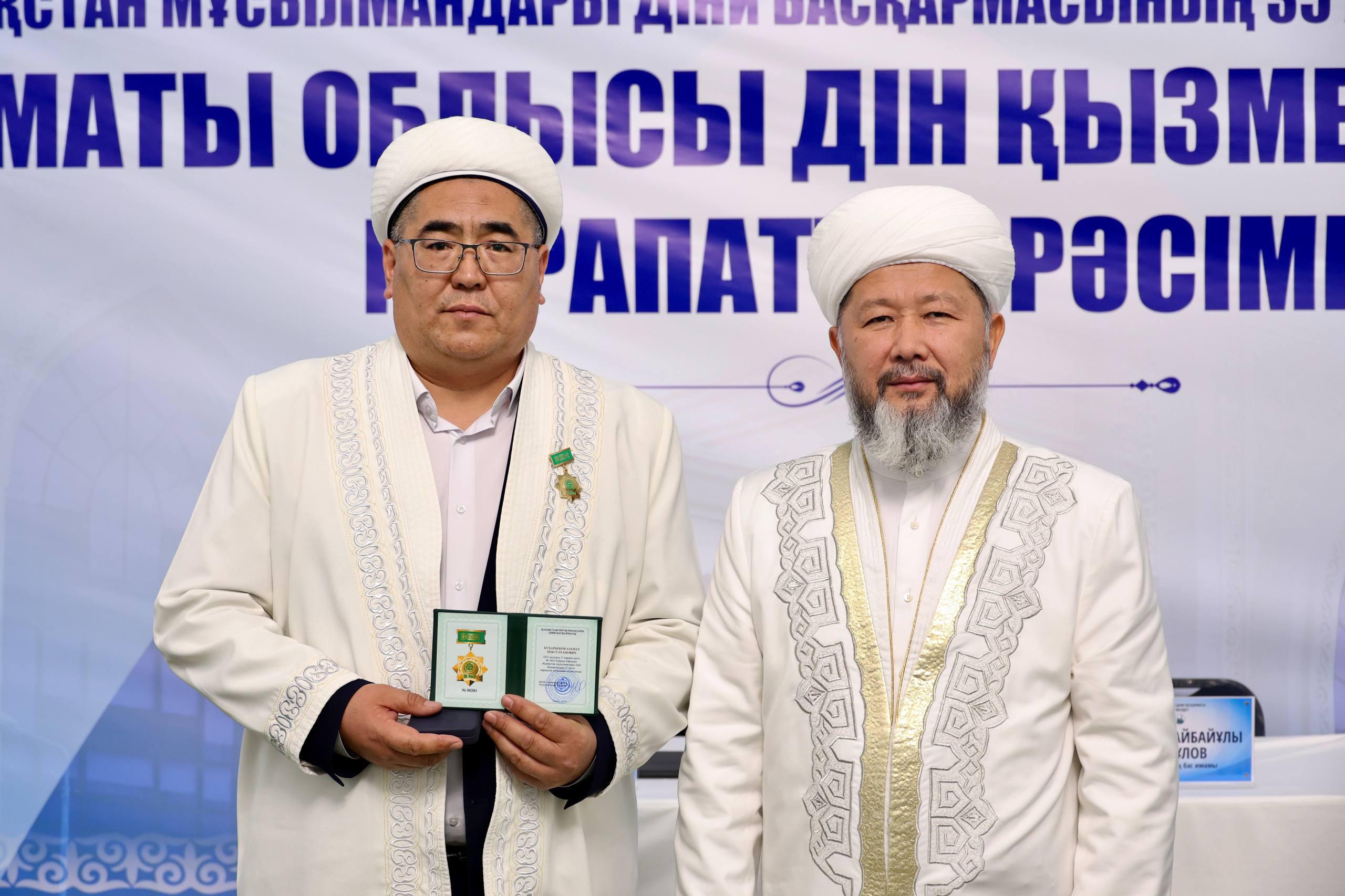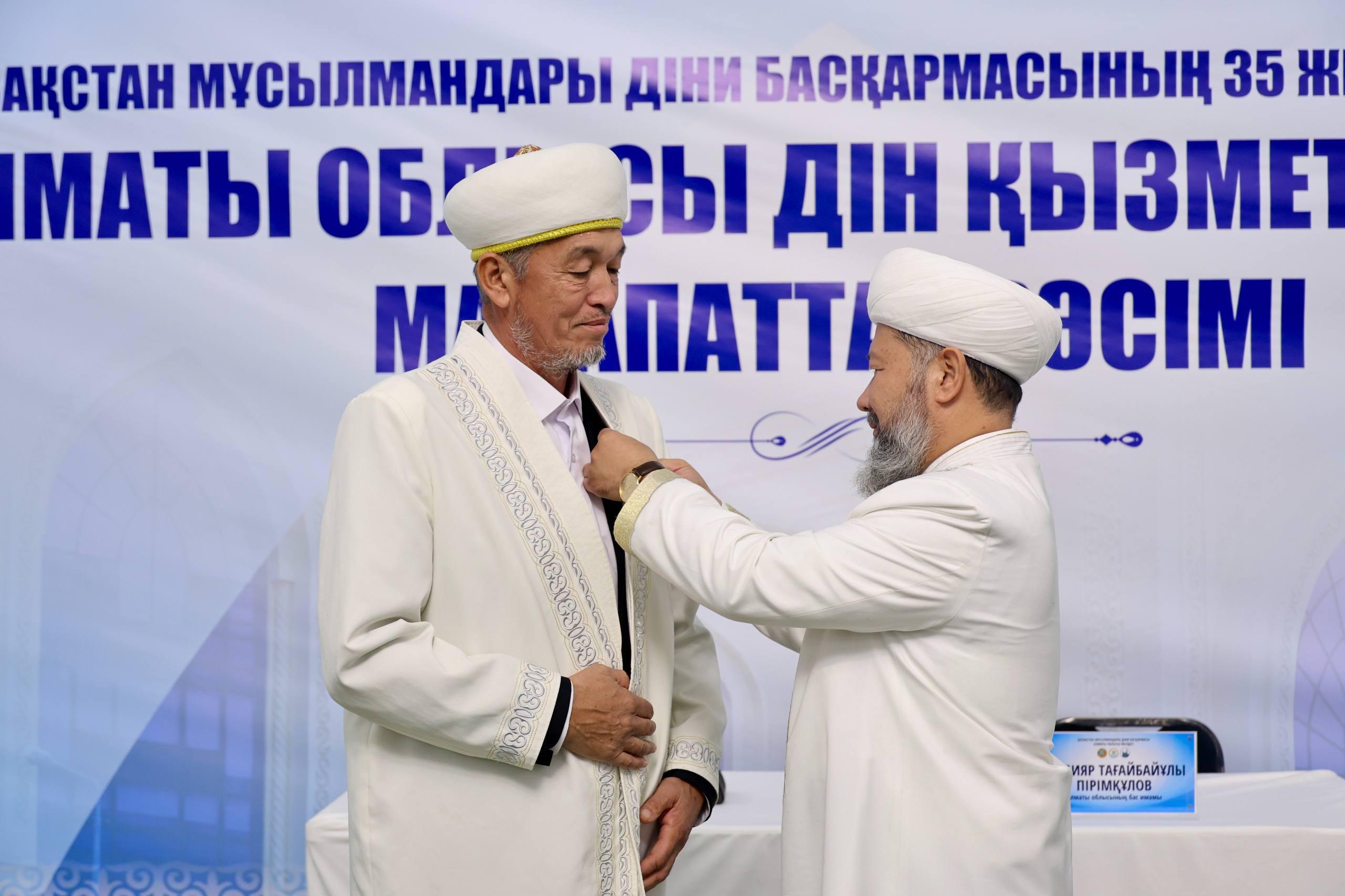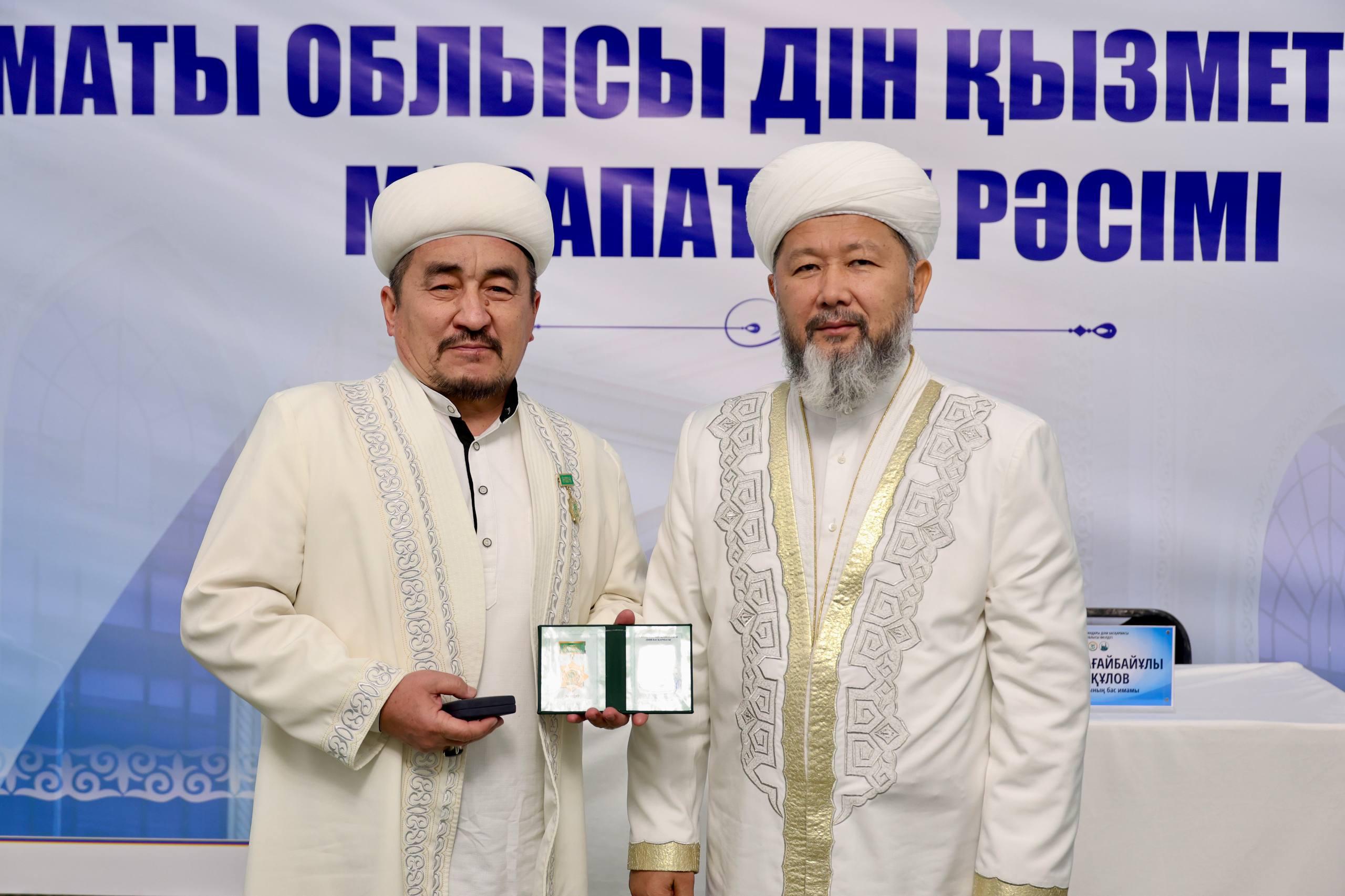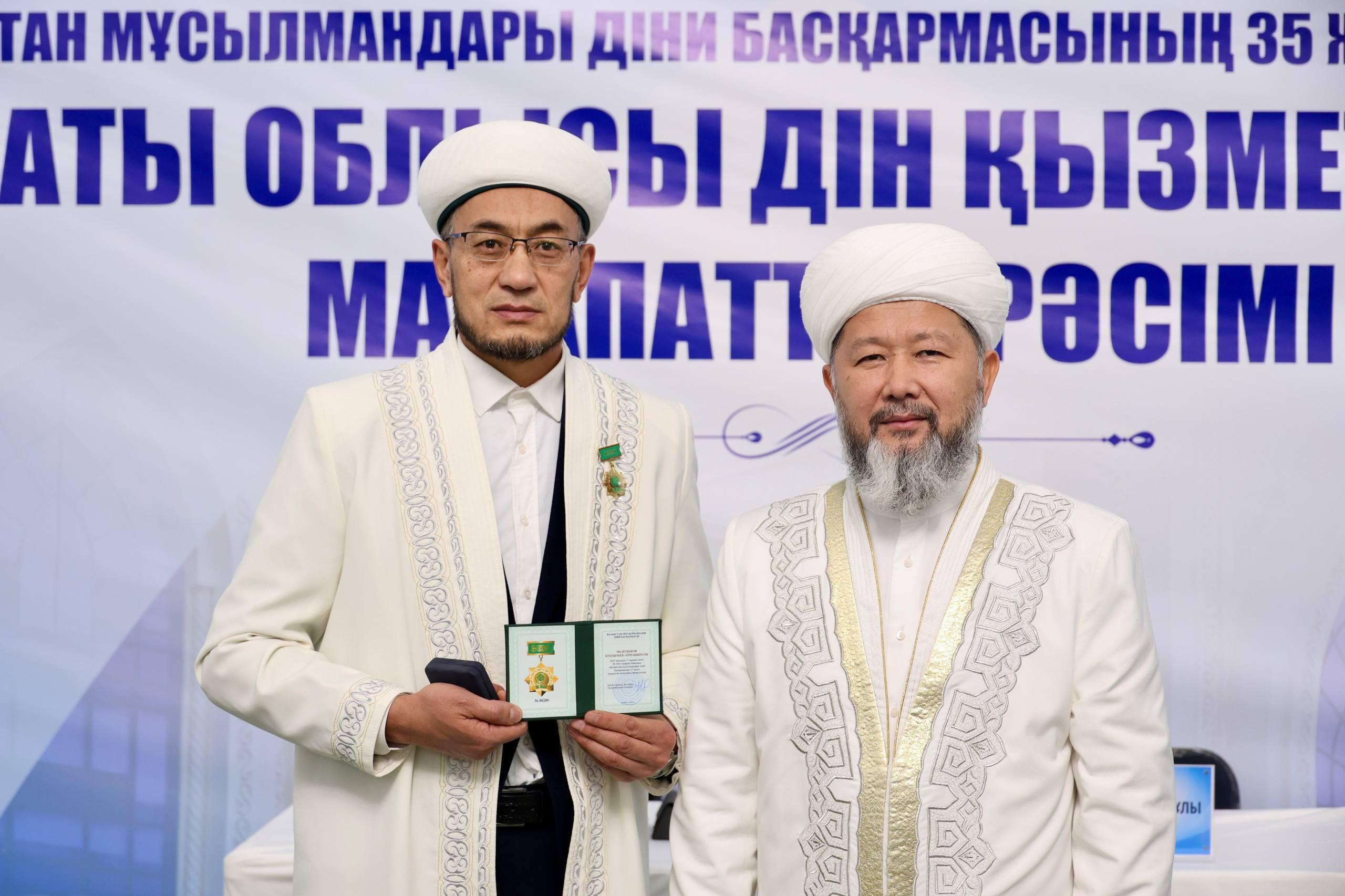 Алматы облысына жасаған жұмыс сапары барысында Қазақстан мұсылмандары діни басқармасының төрағасы, Бас мүфти Наурызбай қажы Тағанұлы өңірдің рухани өміріне елеулі үлес қосып жүрген бірқатар дін қызметкерлерін ҚМДБ-ның 35 жылдық мерейтойлық медалімен марапаттады.