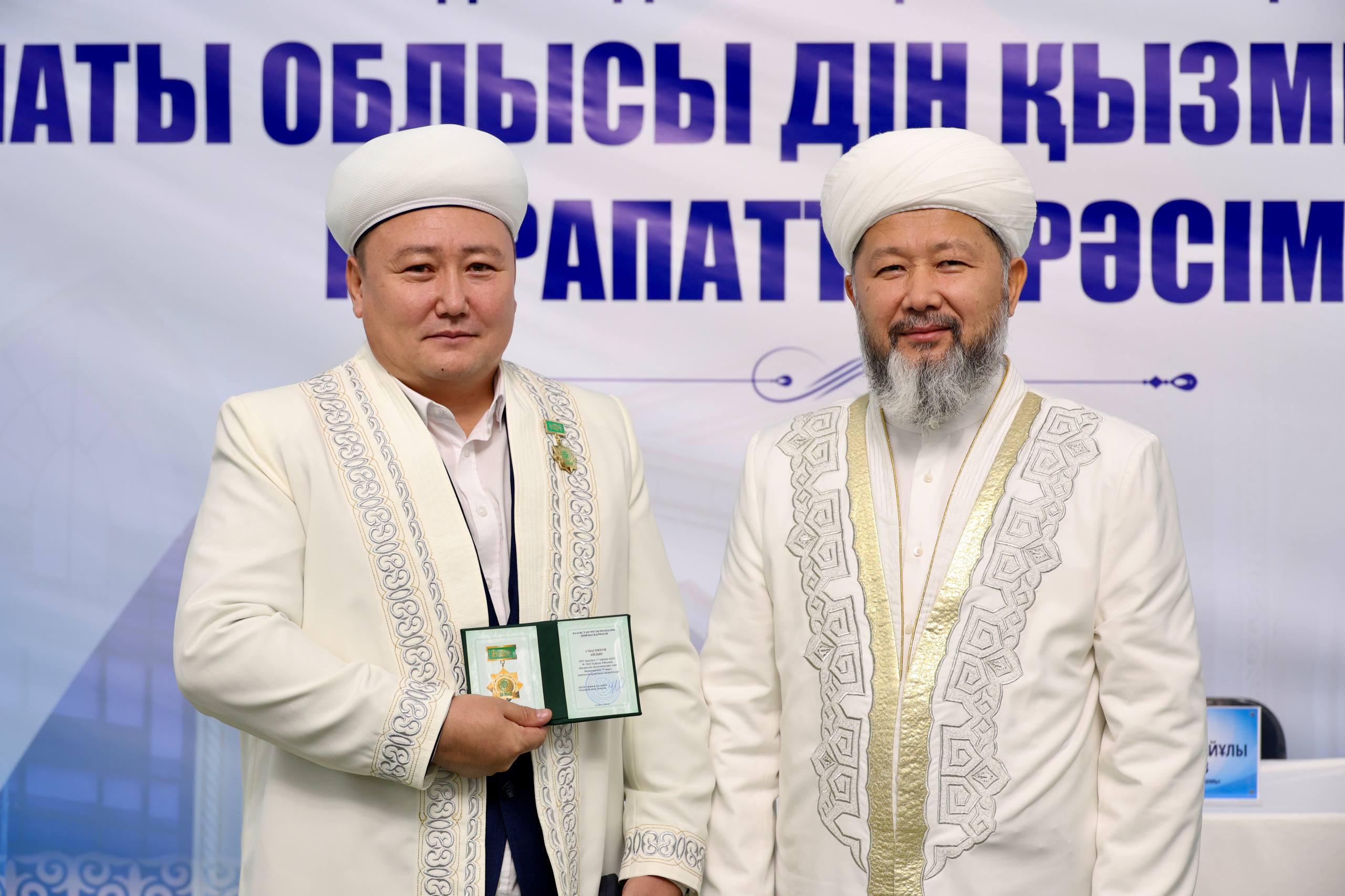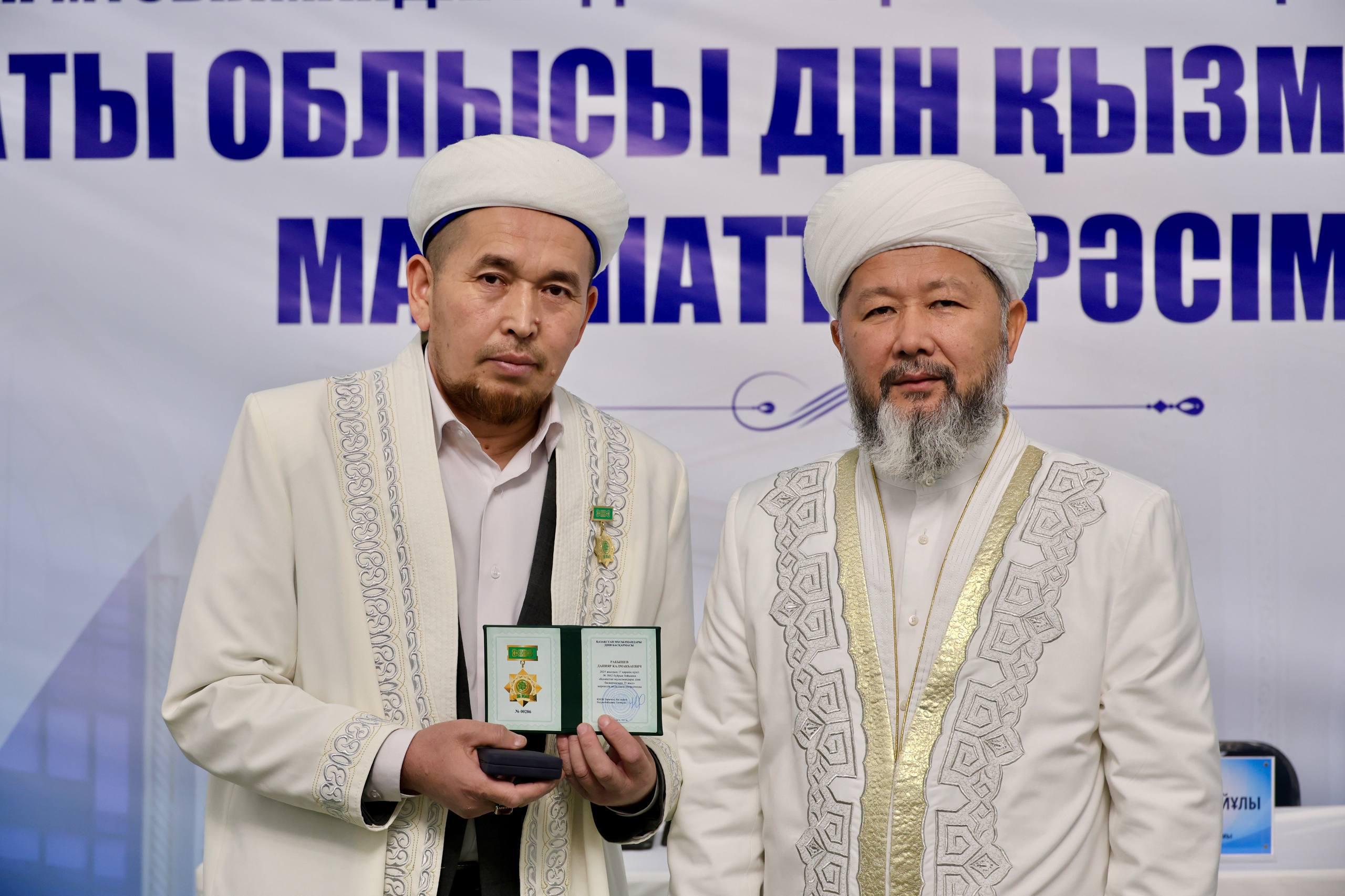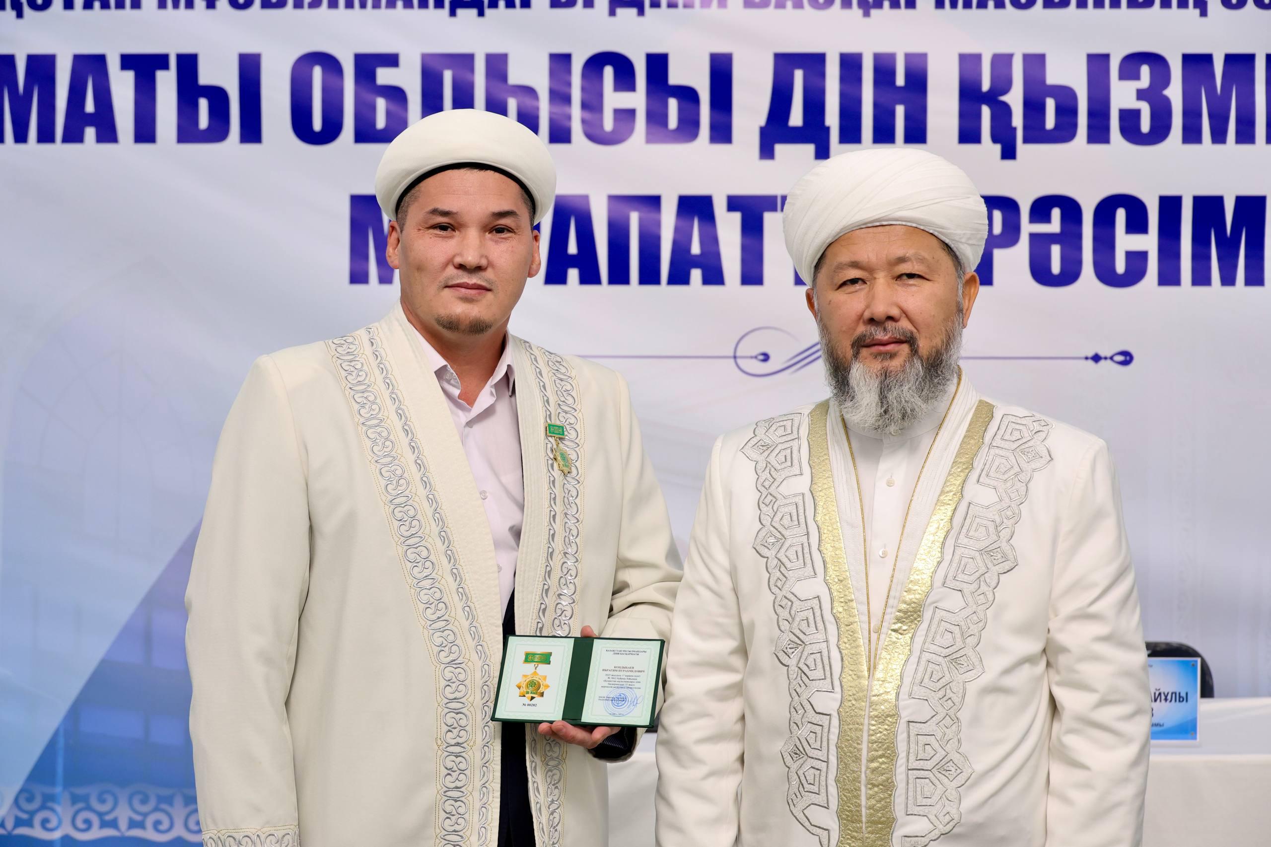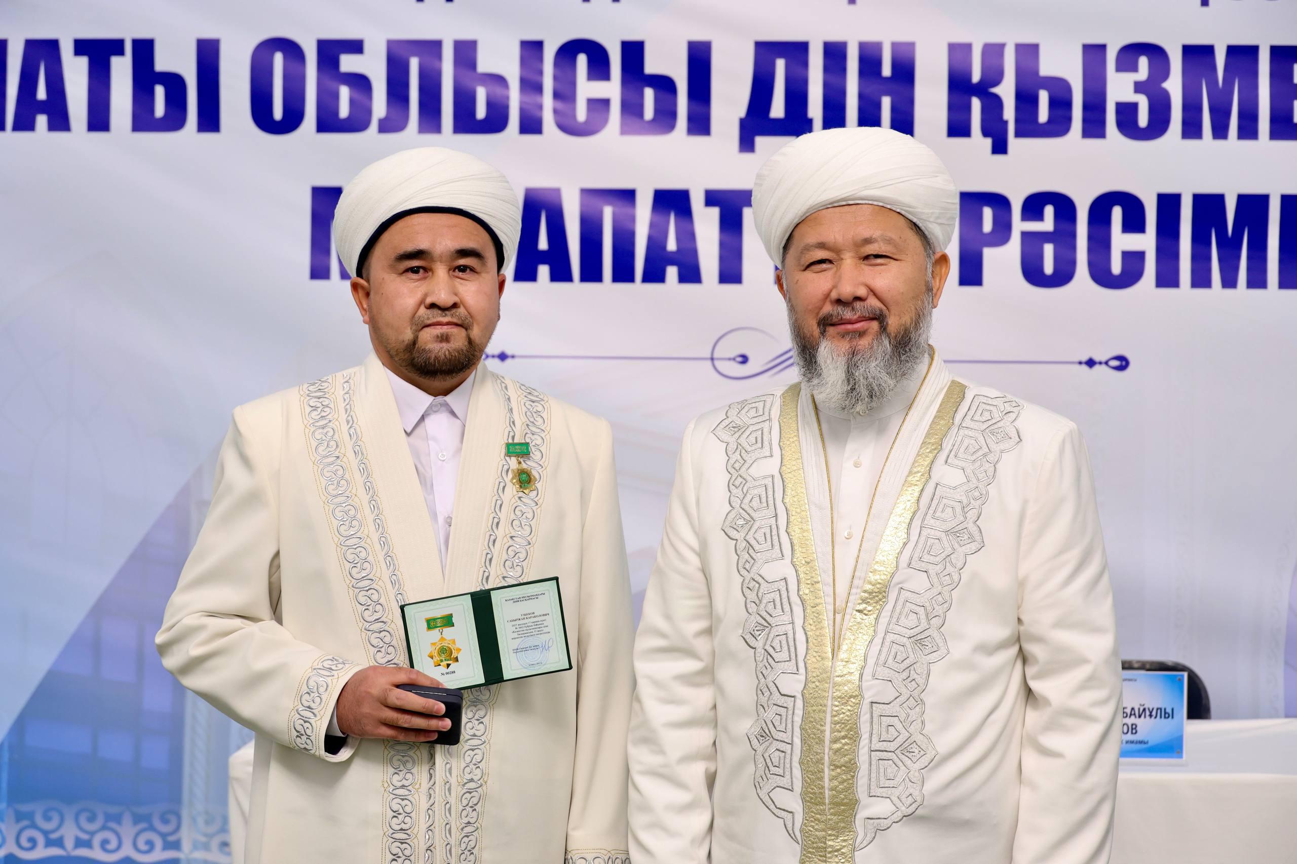 Алматы облысына жасаған жұмыс сапары барысында Қазақстан мұсылмандары діни басқармасының төрағасы, Бас мүфти Наурызбай қажы Тағанұлы өңірдің рухани өміріне елеулі үлес қосып жүрген бірқатар дін қызметкерлерін ҚМДБ-ның 35 жылдық мерейтойлық медалімен марапаттады.