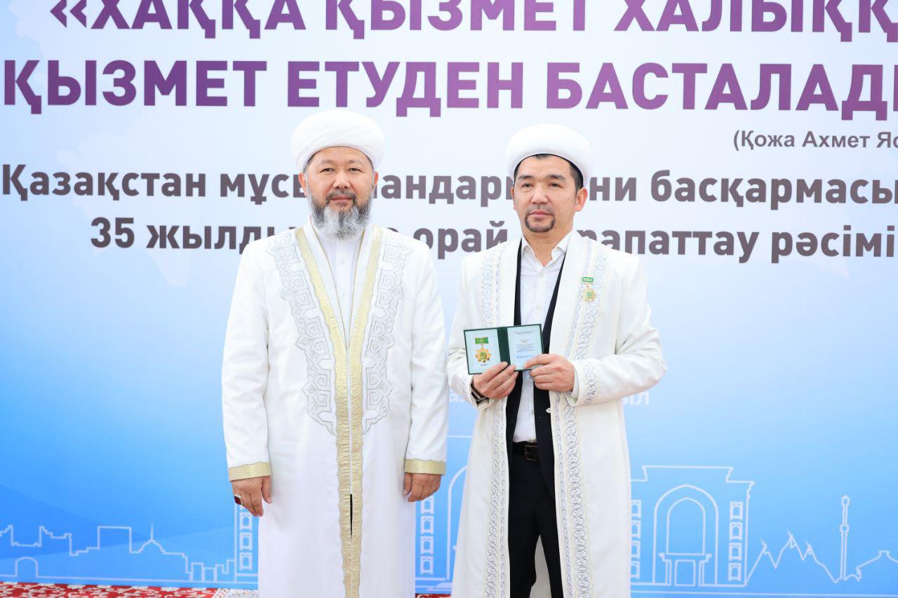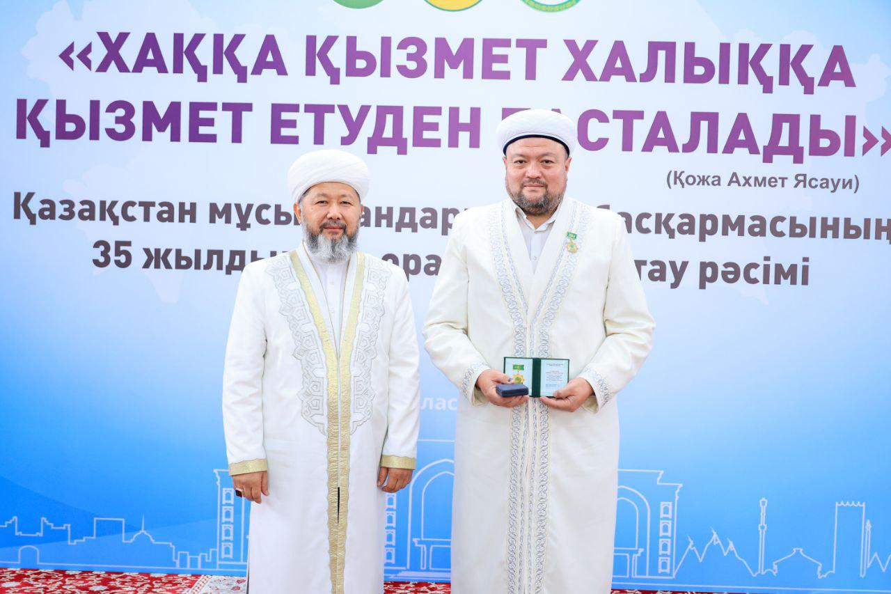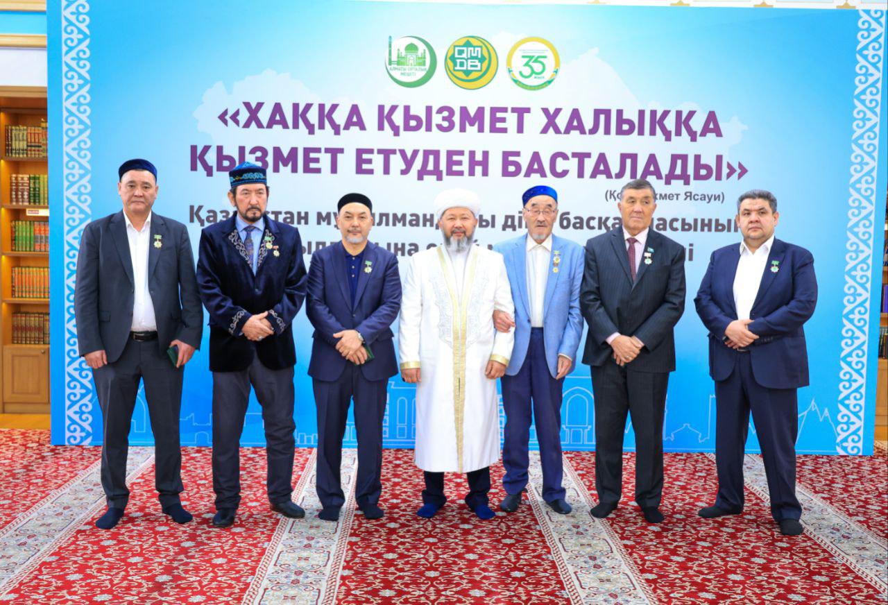Жиында Қазақстан мұсылмандары діни басқармасының Төрағасы, Бас мүфти Наурызбай қажы Тағанұлы дін жолында ұзақ жылдар бойы адал қызмет етіп, елдің рухани тұтастығына үлес қосқан ардагер имамдар мен діни басқарма жүйесінде еңбек еткен қызметкерлерге ҚМДБ-ның 35 жылдық мерекелік медалін табыстады.