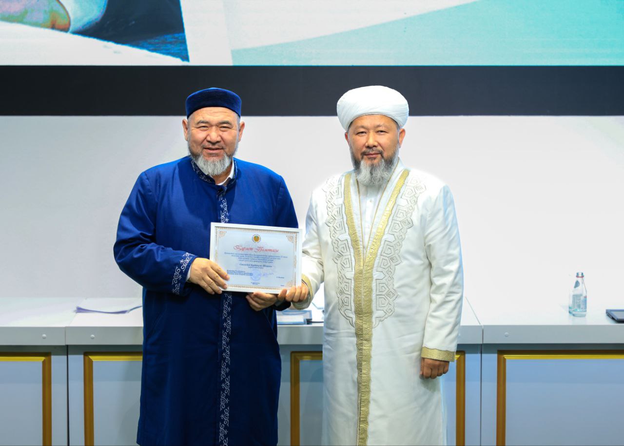 ҚР Премьер-Министрінің орынбасары – Мәдениет және ақпарат министрі Аида Ғалымқызы Балаева атынан ҚМДБ Төрағасының орынбасарлары, наиб мүфтилер Сансызбай Құрбанұлы мен Кенжетай Байкемелұлына «Құрмет грамотасы» табысталды.