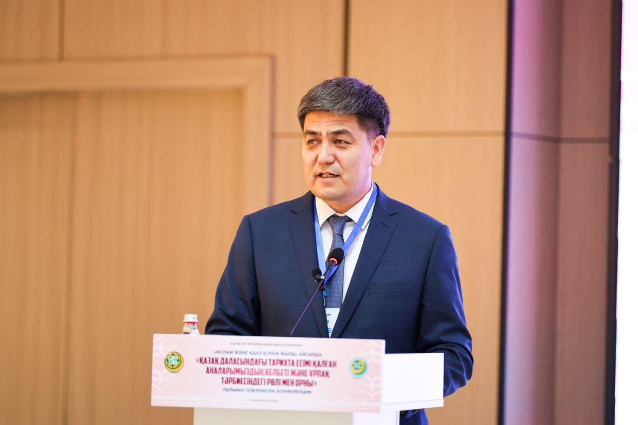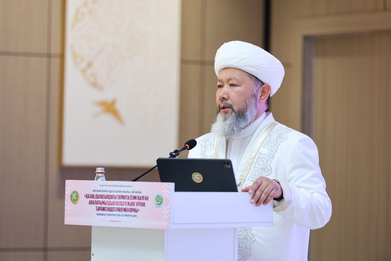 Конференция барысында ҚМДБ Төрағасы, Бас мүфти Наурызбай қажы Тағанұлы баяндама жасап: «Халқымызда: «Отан – отбасыдан басталады» деген қанатты сөз бар. Кез келген қоғамның маңызды институттарының бірі – отбасы. Ал отбасы мен қоғамның тұрағы – әйел. Баланың иманды, ер-жігіттің ұстамды болуына әйелдің әсері өте көп. Ертең елді басқаратын, халықты жақсылыққа бастап, имандылыққа ұйытатын тұлғалардың өмірге келуіне әйелдер үлкен себепкер болатыны белгілі.