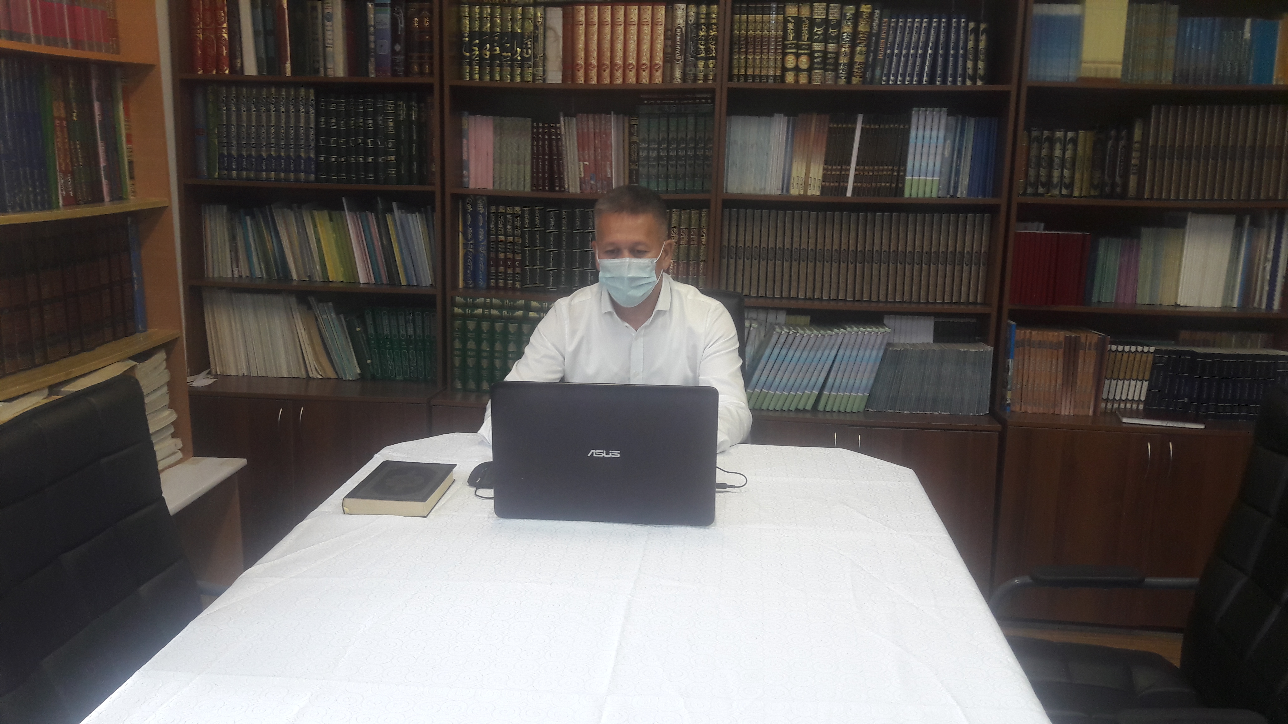 Председатель экзаменационной комиссии Аршабаев С. передал напутствие Верховного муфтия Наурызбая кажы Таганулы и поздравления выпускникам с окончанием учебы и пожеланиями им успехов в религиозной деятельности.