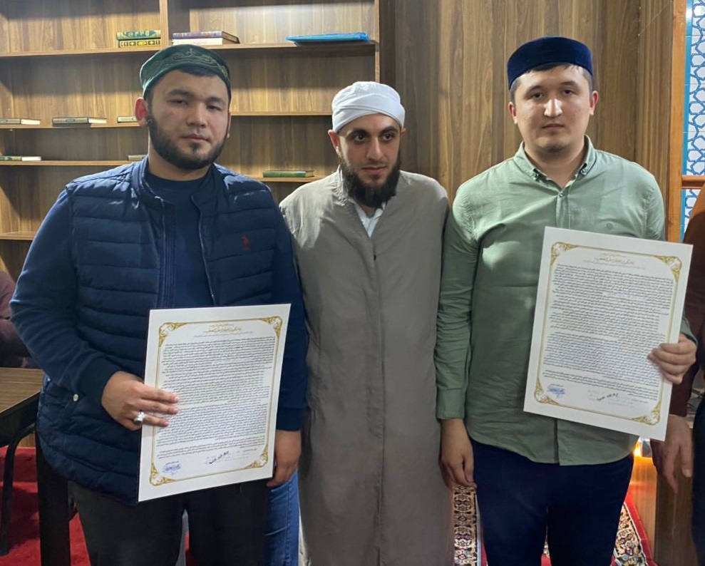 Аскар Ибадуллаев, выпускник медресе-колледжа «Астана» в столице, и Муртаза Балахмет, выпускник Республиканского центра подготовки чтецов Корана «Кавам ад-Дина аль-Иткани аль-Фараби ат-Туркестани», получили иджазу риваята «Хафс» и «Шу'ба» – кыраата «Асим» Священного Корана.