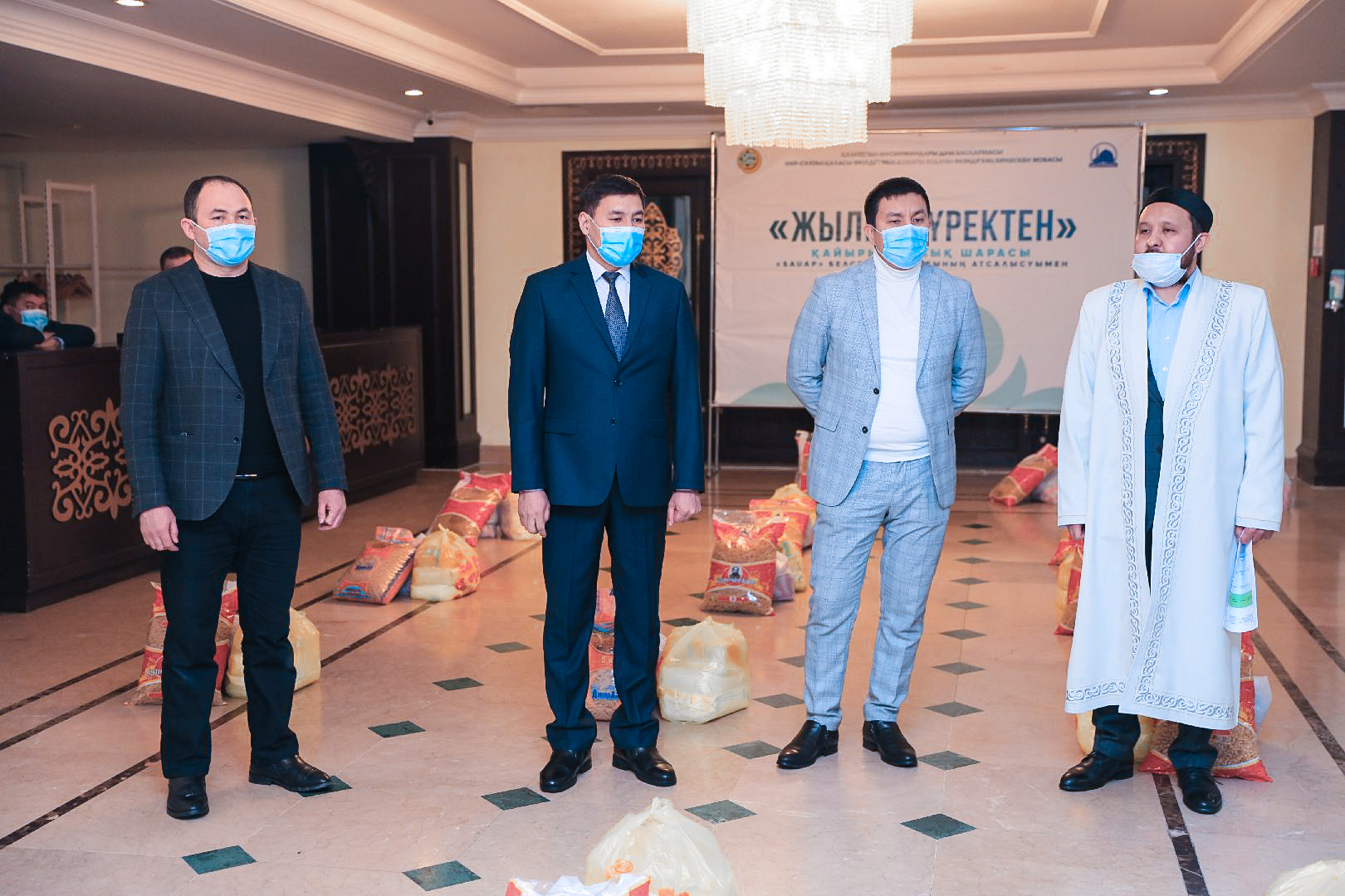 При участии группы активистов «Сауап» и акимата Алматинского района продуктовые пакеты были розданы 30 малообеспеченным семьям.