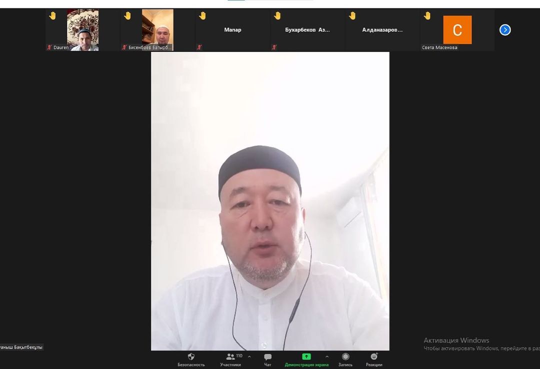 Сагыныш Жанабай, заместитель директора Центра исследования проблем в сфере религии, и Куаныш Наржанов, главный имам Алматинской области, открыли двухдневный онлайн-курс, организованный Управлением по делам религий Алматинской области, Египетским университетом исламской культуры Нур-Мубарак и Молодежным общественным объединением «Жастар жолы».