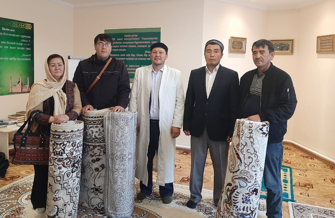 Местные жители тепло встретили наших братьев и сестер. Сначала в мечети Есильского района прочитали Коран, затем накрыли дастархан и провели собрание. Затем каждой семье было подарено по 15 ковров от мечетей «Мадениет-дастем» и «Кобеш».