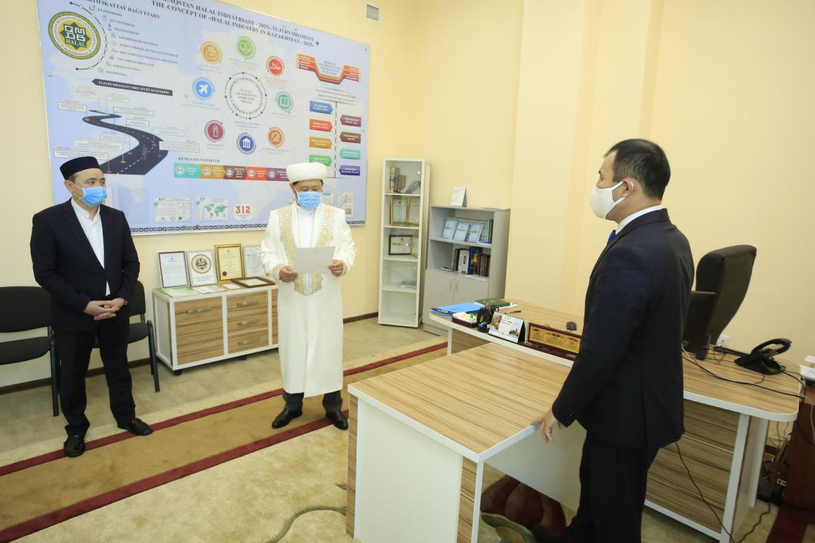 Сегодня по приказу Верховного муфтия Наурызбая кажы Таганулы Айбек Аташев назначен директором ТОО «Халал Даму» при ДУМК.