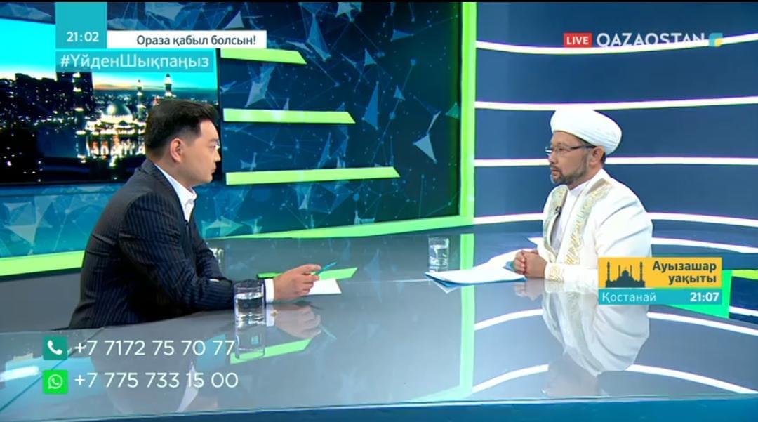 Председатель Духовного управления мусульман Казахстана Наурызбай кажы Таганулы принял участие в программе «Ораза қабыл болсын» на национальном телеканале «QAZAQSTAN» и дал интервью о ценности и достоинствах Рамадана.