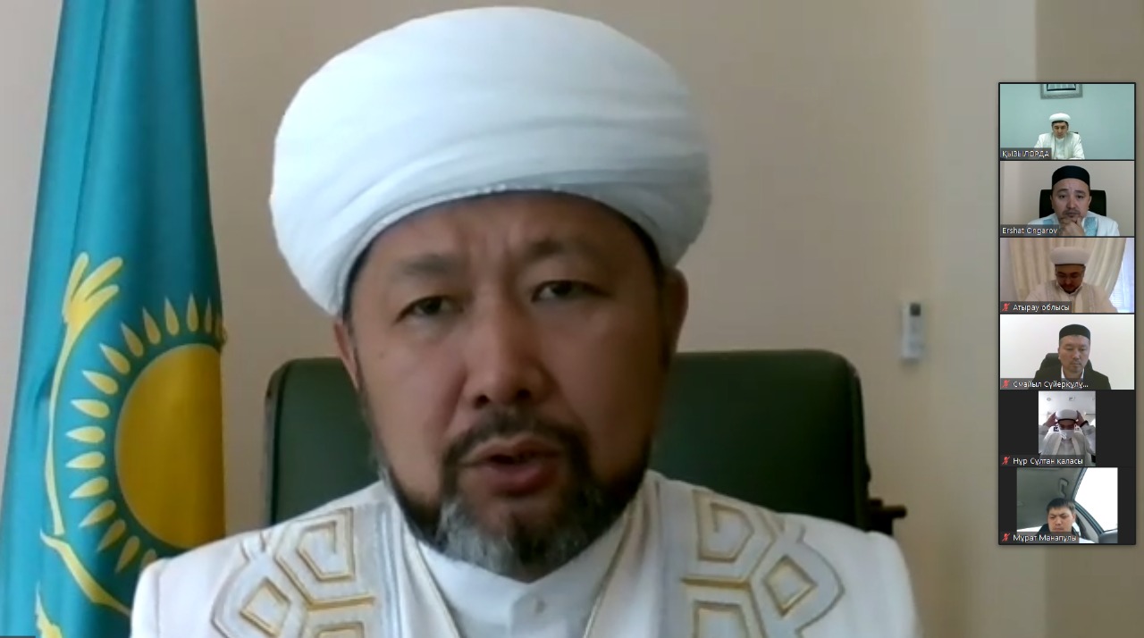 Сегодня председатель Духовного управления мусульман Казахстана, Верховный муфтий Наурызбай кажы Таганулы провел онлайн-встречу с Центральным аппаратом и имамами областей.