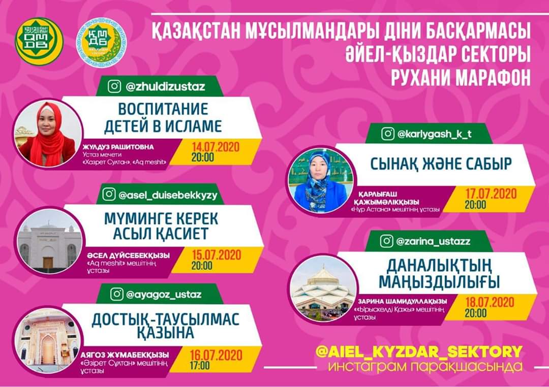 Начался «Духовный марафон», организованный сектором Женщин и девушек при Духовном управлении мусульман Казахстана и устазами города Нур-Султан, для всех мусульманок страны.