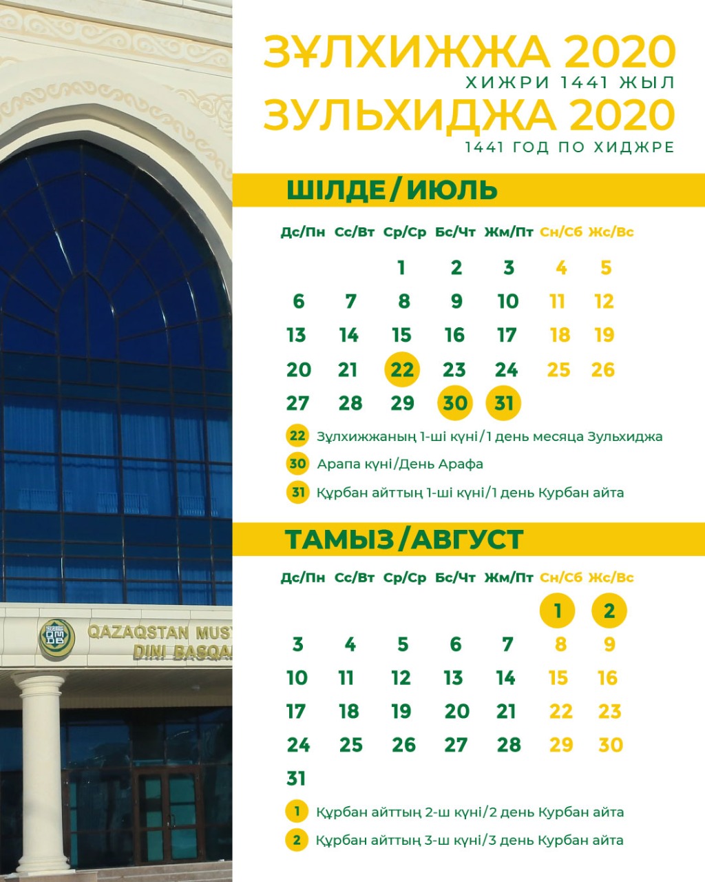 Сегодня последний день месяца Зулькагда. Завтра, то есть 22 июля начинается месяц Зульхиджа.