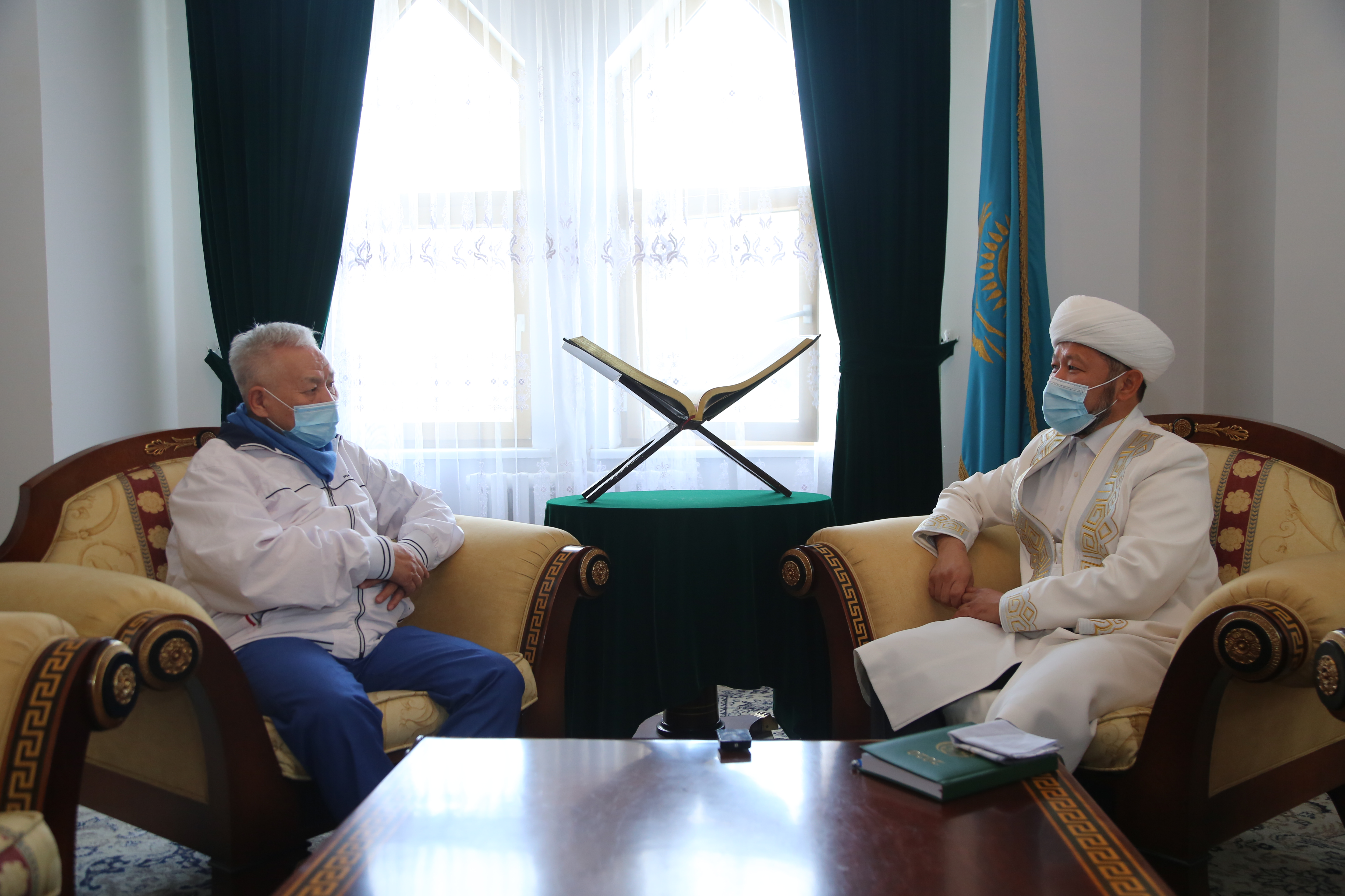 Председатель Духовного управления мусульман Казахстана, Верховный муфтий Наурызбай кажы Таганулы во время рабочей поездки в Алматы встретился с известным писателем Маратом Токашбаевым.