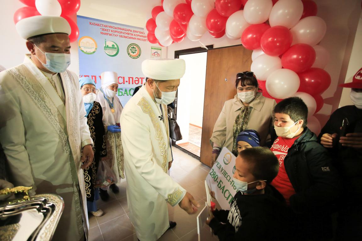 Во время своего визита в Мангистаускую область Председатель ДУМК, Верховный муфтий Наурызбай кажы Таганулы принял участие в церемонии вручения ключей от домов малообеспеченным семьям в рамках проекта «Ел үлесі – пәтерге» фонда «Зекет».